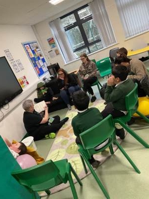 In our Sensory Story sessions, we’ve been reading A Squash and a Squeeze by Julia Donaldson. The children have loved listening to the story, exploring all the different props, and using positional language such as in, out, and on. We even re-enacted the story on a tuff tray, placing the animals in the house and then taking them back out. We’ve also created fabulous paper-plate pigs, matched characters and animal names to pictures, and used colourful semantics to build sentences describing the story, identifying who is in the picture and what they are doing.
