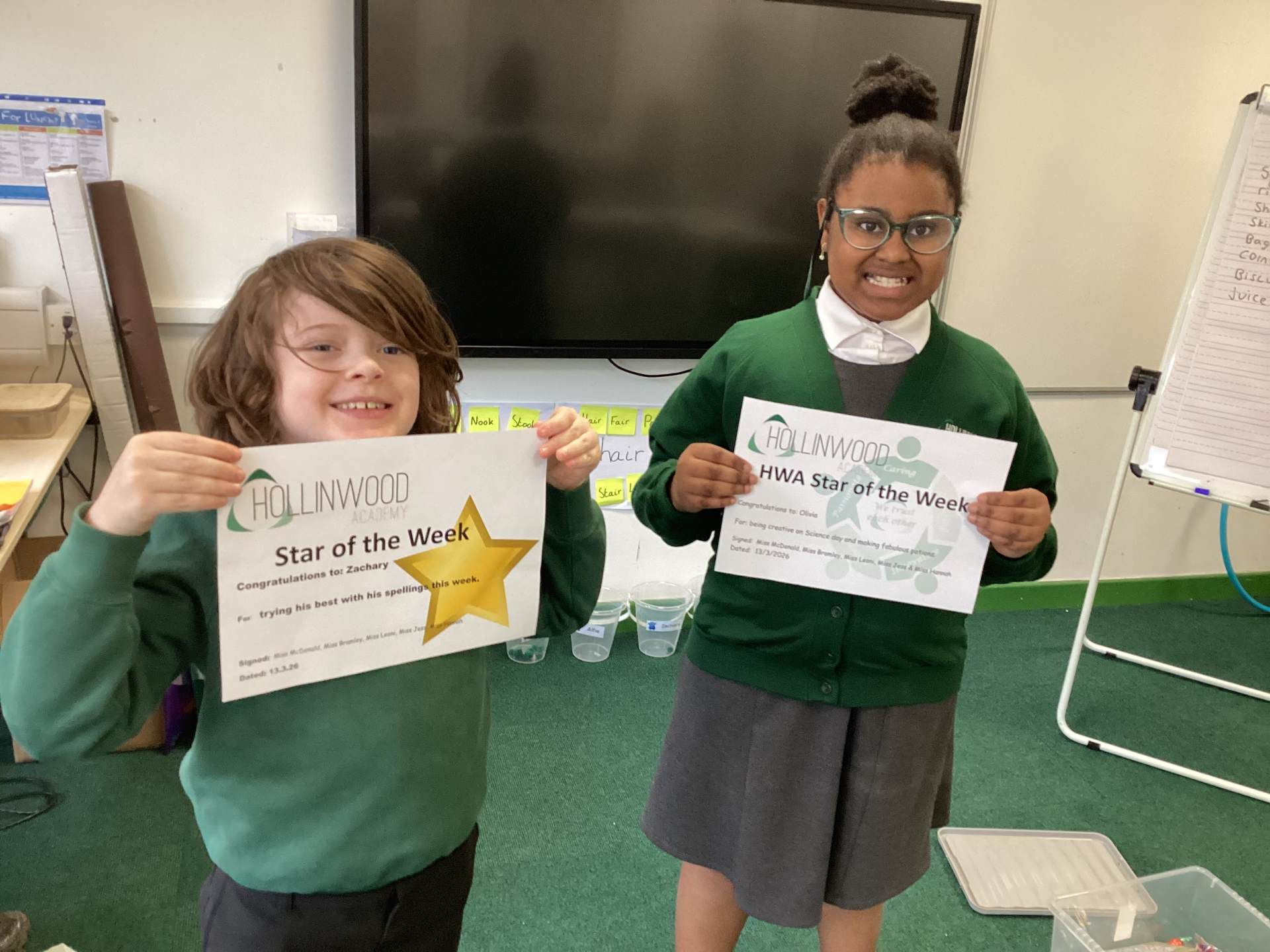 Mrs McDonalds’ and Mrs Bramley’s creative star goes to Olivia for being creative on Science day and making fabulous potions.