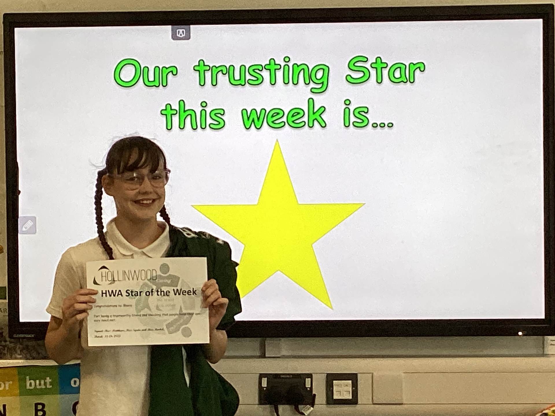 Miss Pietraszewska’ s STAR of the week is Diana for: working so hard this year in phonics, starting to read your first books, and scoring 22 on the KS1 Phonics Screening Check — you are a superstar.