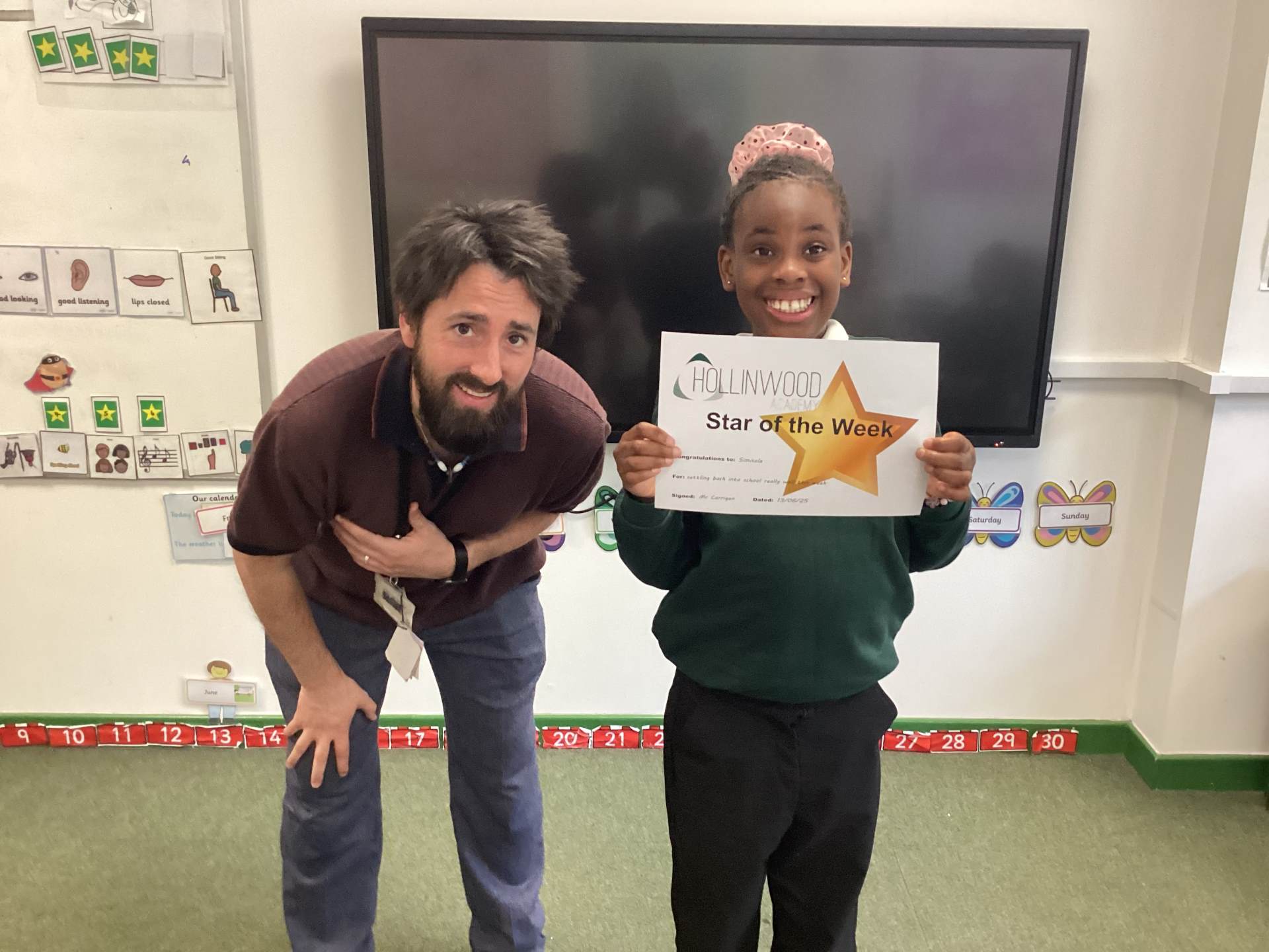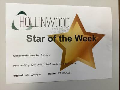 Mr Corrigan’s STAR of the week is Simisola for settling back into school really well this week.