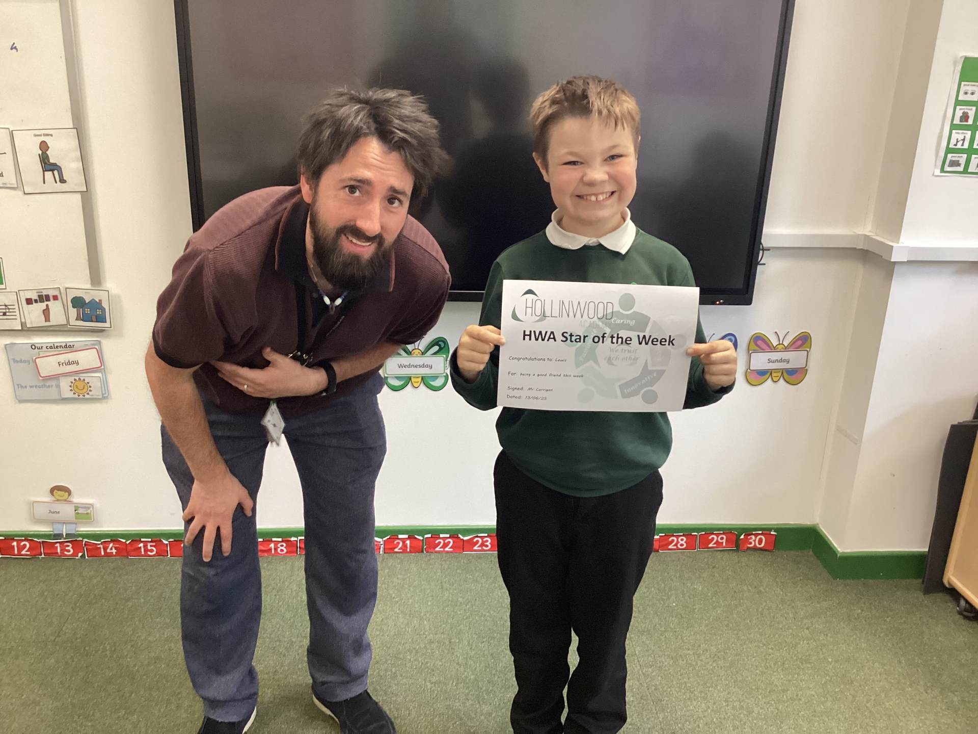 Mr Corrigan’s HWA We are trusting goes to Lewis for being a good friend this week.