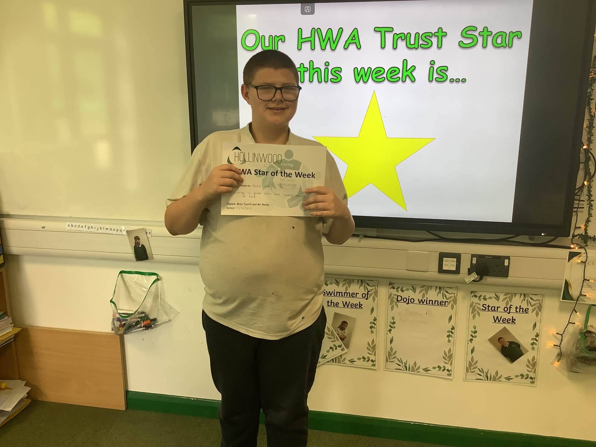 Miss Quinn’s HWA We are trusting goes to Euan for sitting so well during Attention Autism this week – what a superstar.