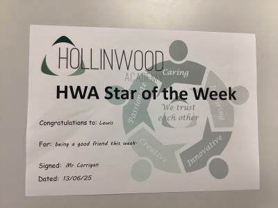 Miss Hulme STAR of the week is Ace for his improved behaviour and attitude to learning this week.