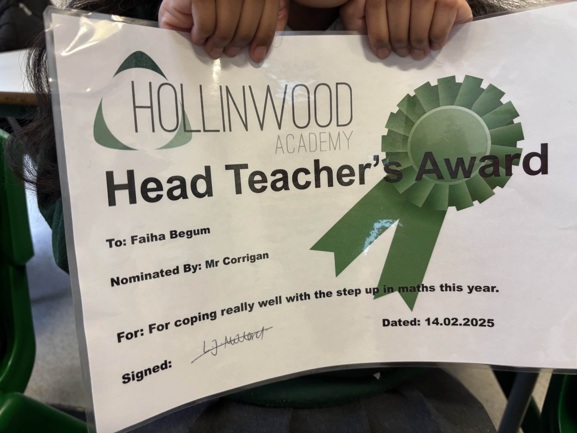 Mr Corrigan’s WOW moments go to Lewis and Faiha. Well done!