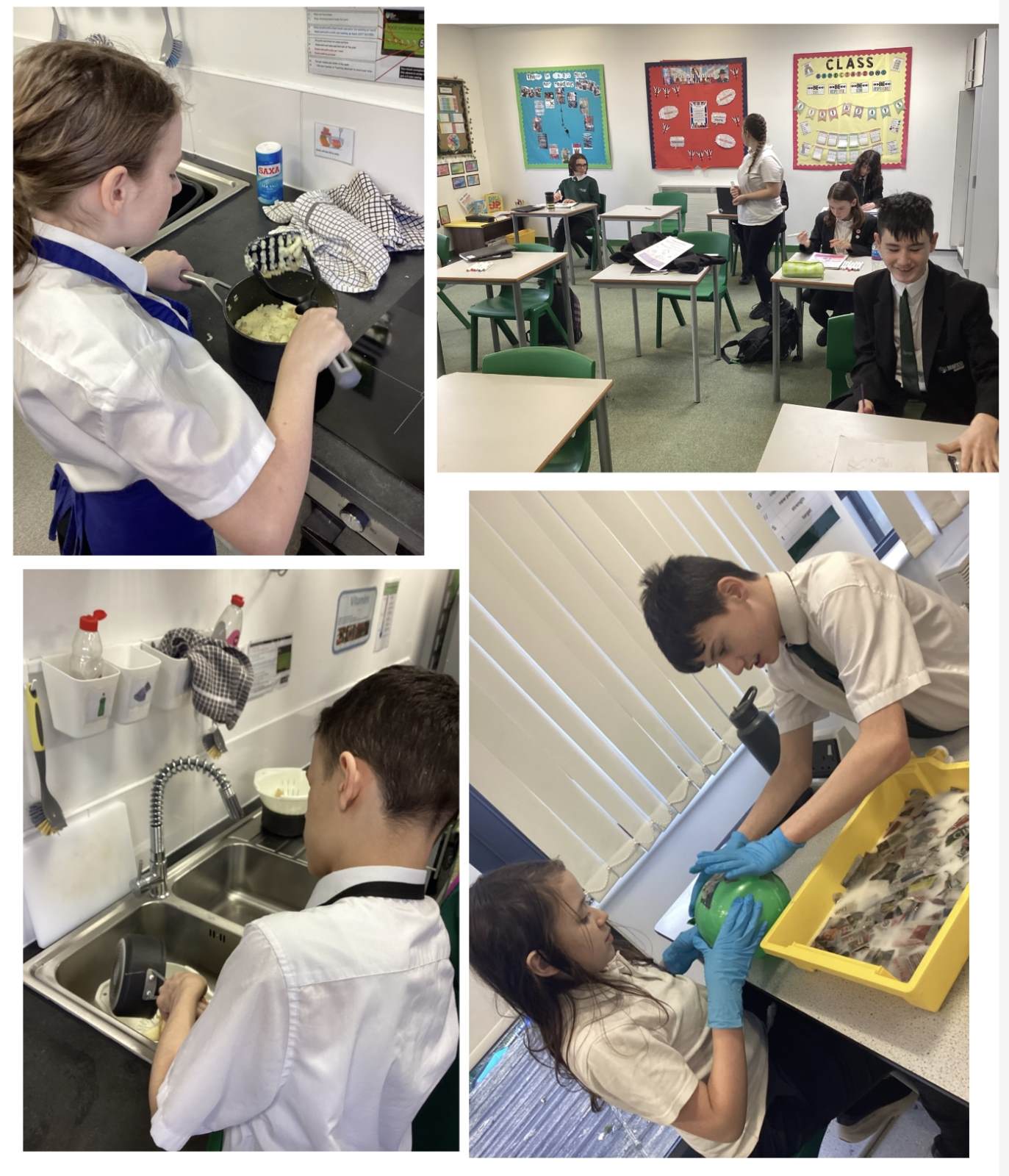 During food we have been learning about different cooking methods focusing on boiling and simmering. We made mashed potato. We were able to follow instructions and work
