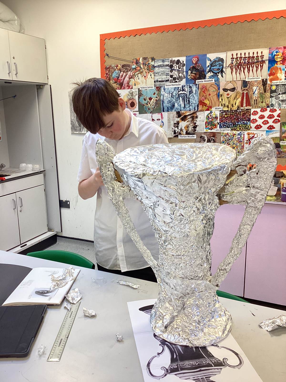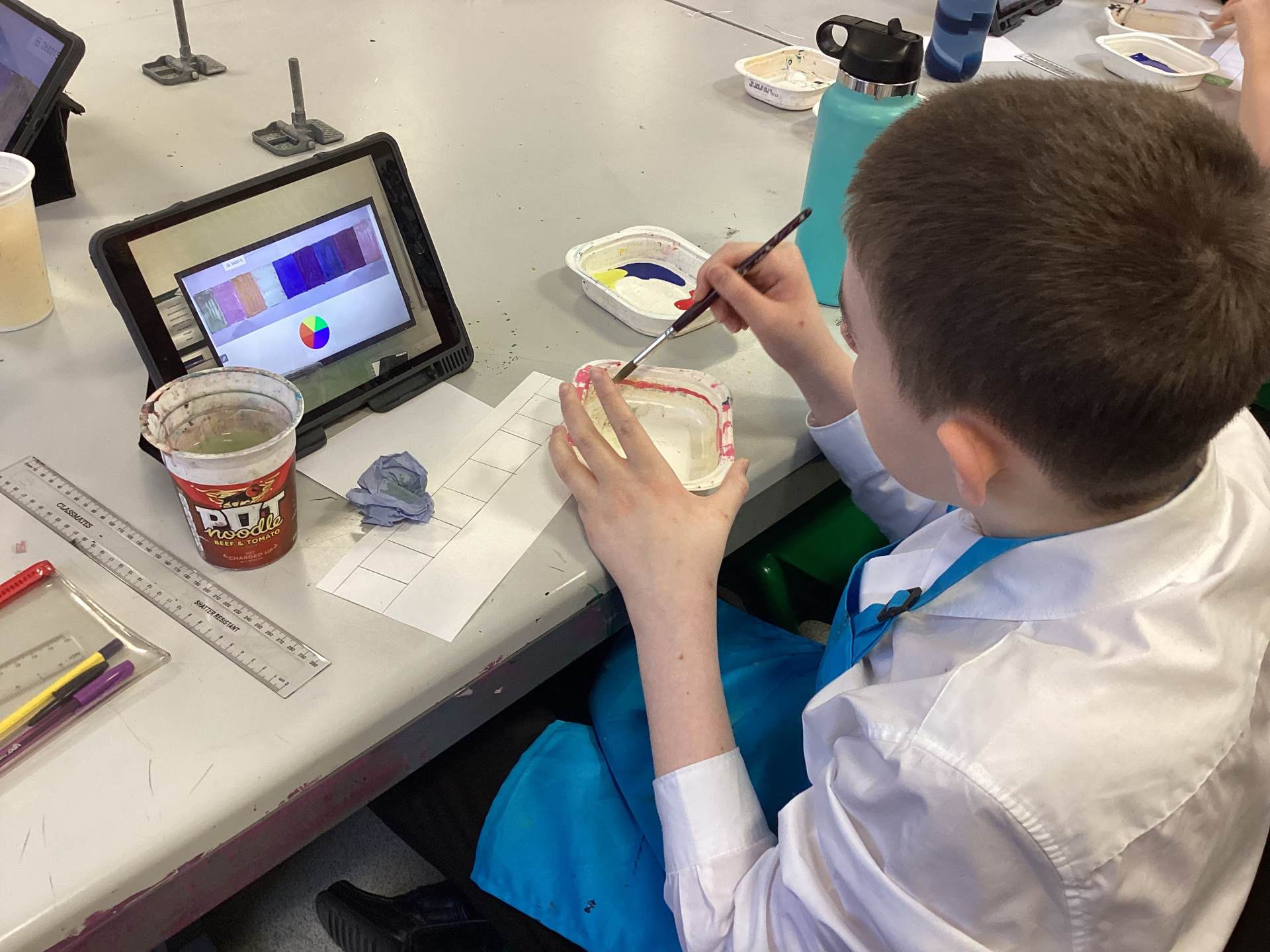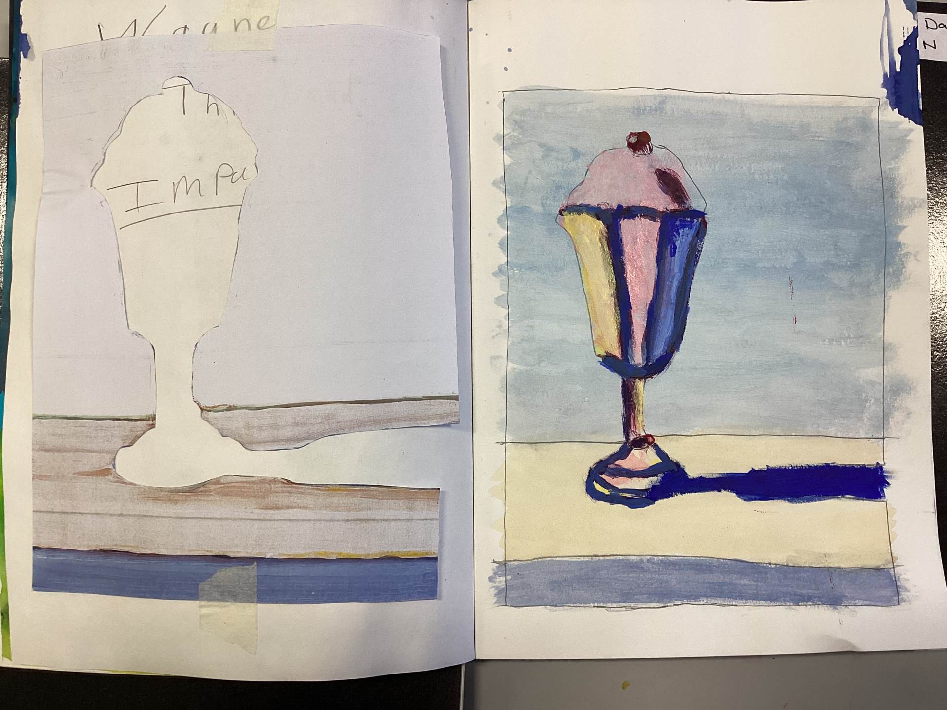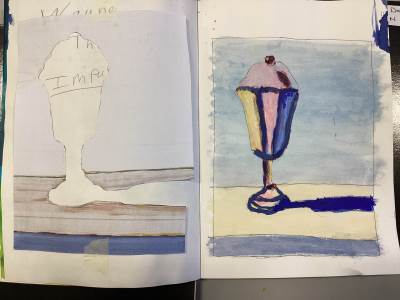 During Art, the class have been recreating a painting by the artist Thiebaud, depicting mass consumption in American society.