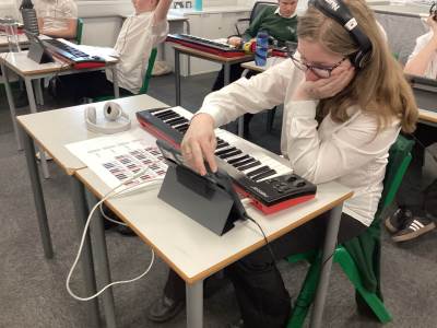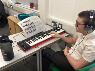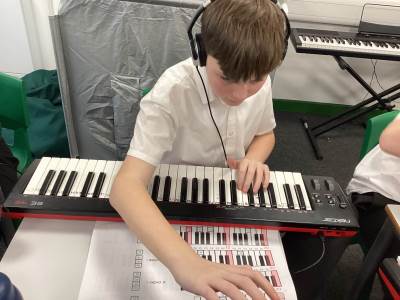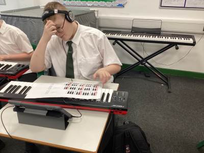 In music we have been learning skills of playing different chords, the theme this term has been blues. The class have demonstrated good skills when playing chords on guitar.