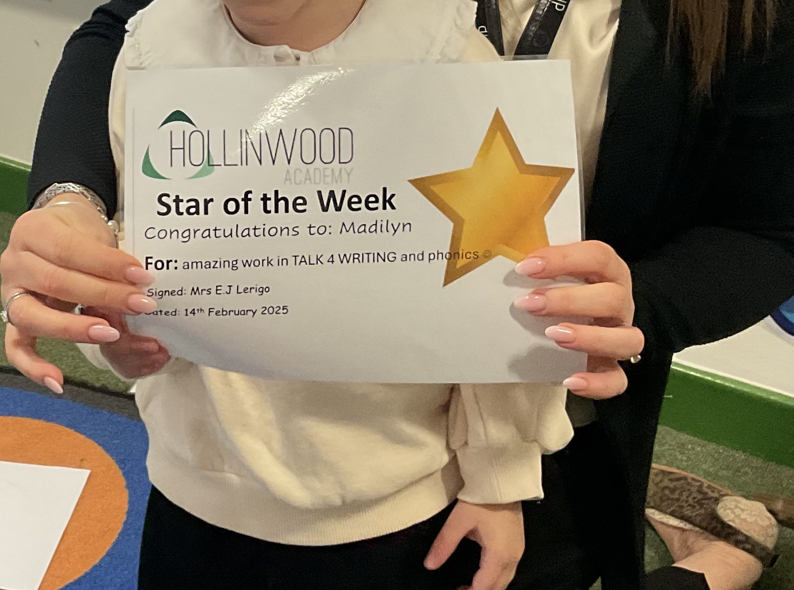 Mrs Lerigo’s STAR of the week is Madilyn for amazing work in TALK 4 WRITING and phonics.