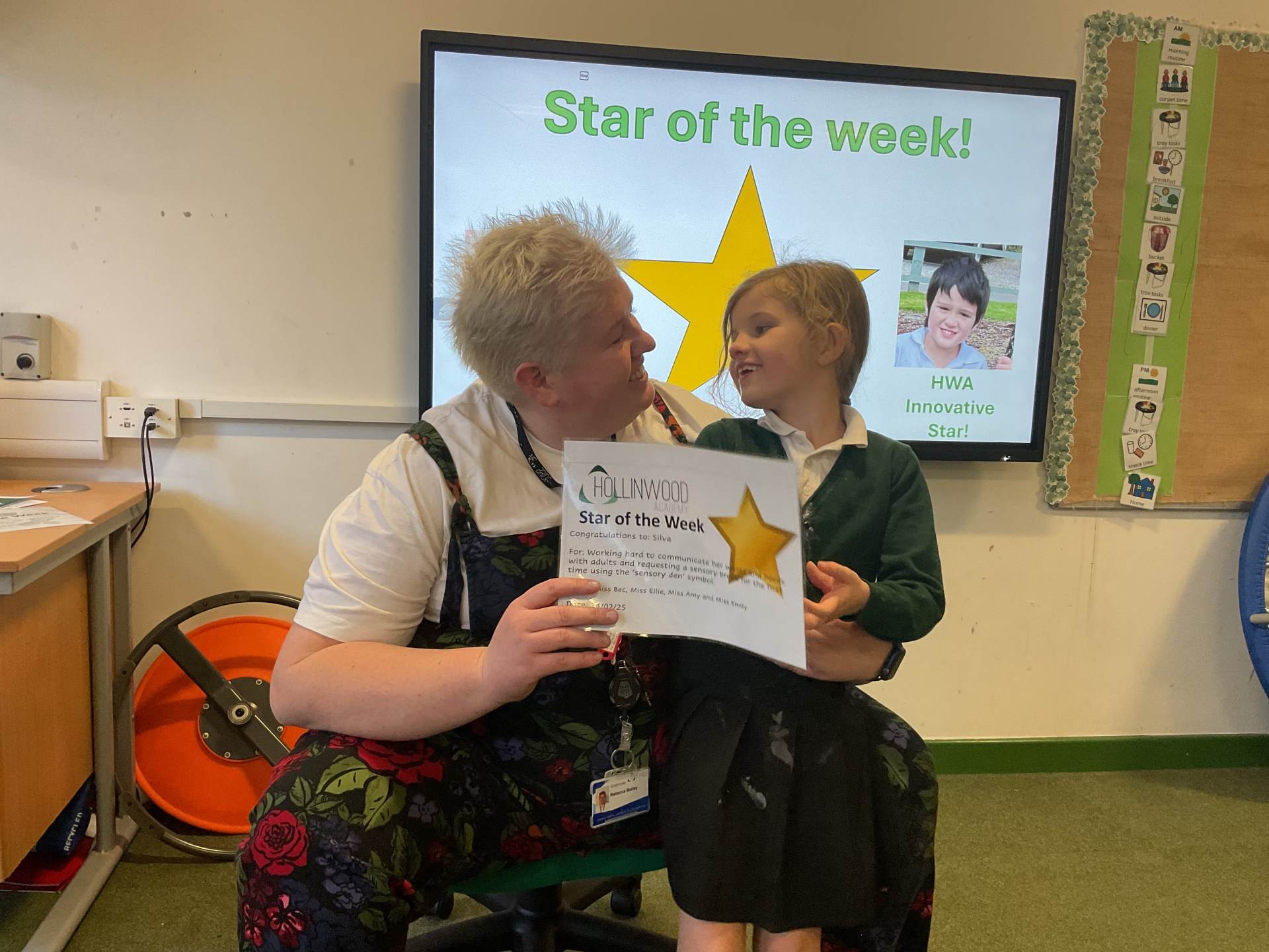 Miss Bailey’s STAR of the week is Silva for working hard to communicate her wants and needs with adults and requesting a sensory break for the first time using the ‘sensory den’ symbol.