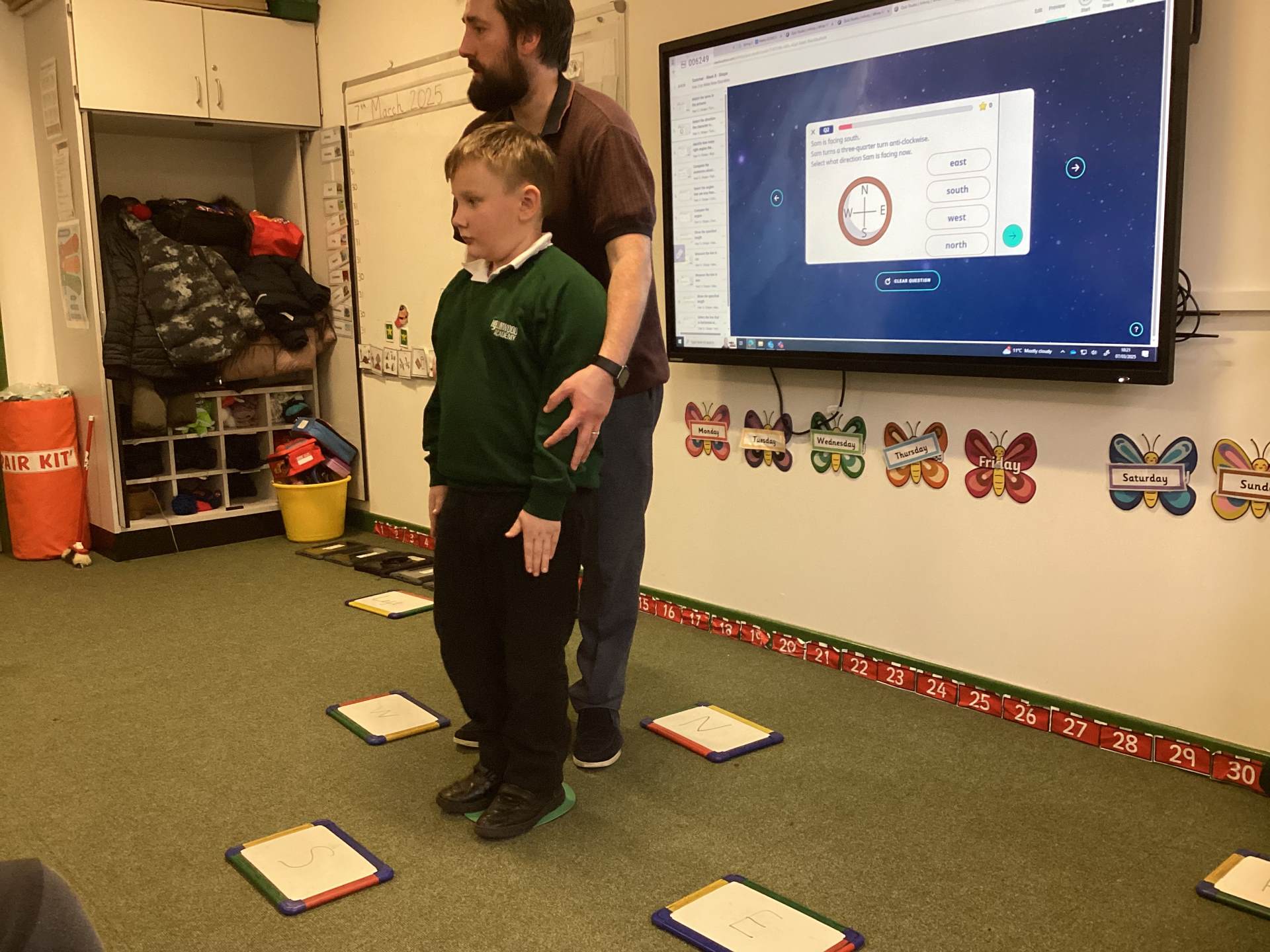 "Our maths focus this half term is position & direction. This week we have been using a compass to understand turns.
