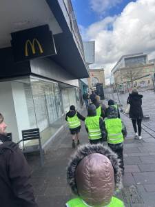 Our GCSE photography class were tutored by some visiting Destiny students from New Bridge College. Former students Max and Gianfranco came to do a workshop and showed our year 10 students how to take photographs using different shutter speeds. They worked together to change shutter speeds on our cameras to create photographs showing blurring where they created movement. The students used this to shoot and edit photographs of moving people and vehicles.