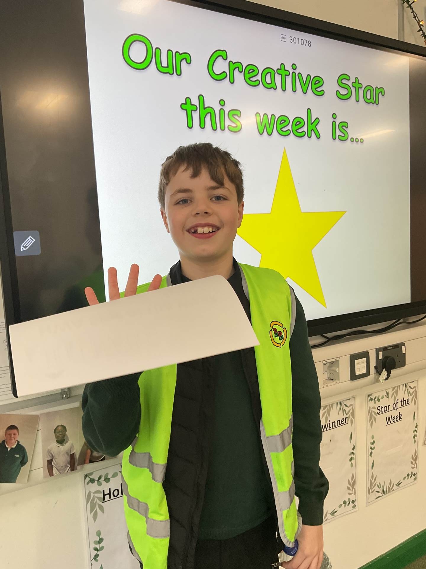 Miss Tootill’s STAR of the week is Jack for displaying leadership skills whilst working as a class to create our science project.