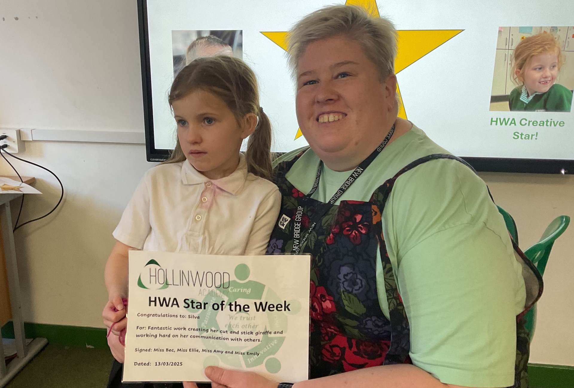 Miss Bailey’s HWA We are Creative Star is Silva - For fantastic work creating her cut and stick giraffe and working hard on her communication with others.