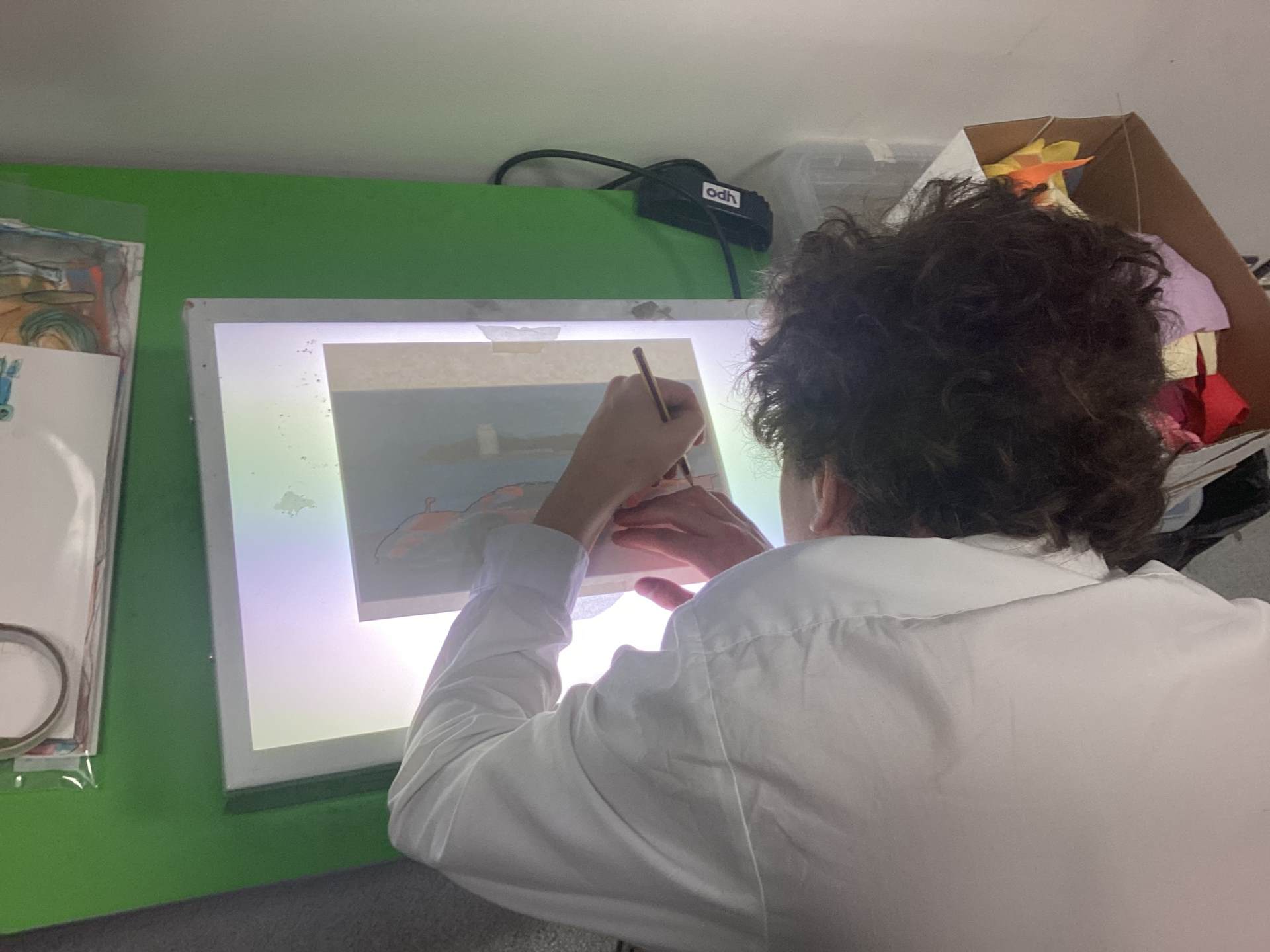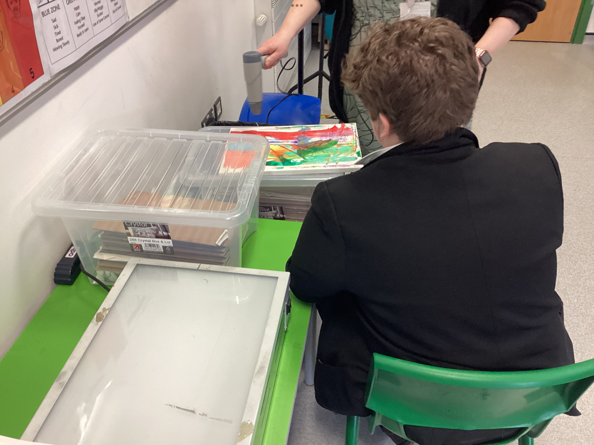 Art has been successful over the last couple of weeks, although we have some very talented artists in the class, they struggle in the lessons because they cannot do their own thing. Over the last couple of weeks Mrs Whalley has allowed them to create their own piece of artwork and as you will see its amazing. Sam used the light box to help him copy a picture.