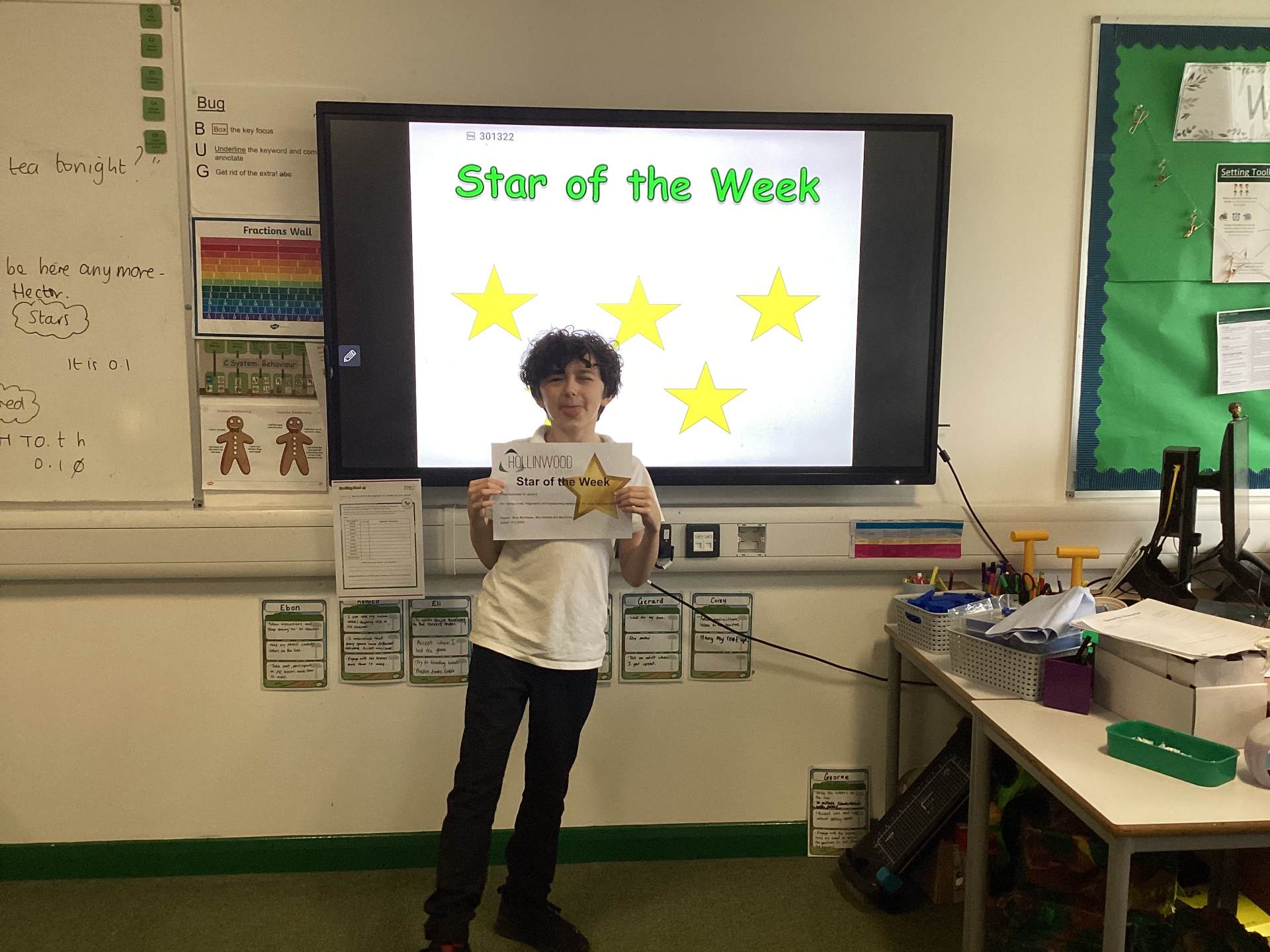 Miss Matthew’s STAR of the week is Gerad for being a kind, responsible and hardworking member of the class– well done Gerard!