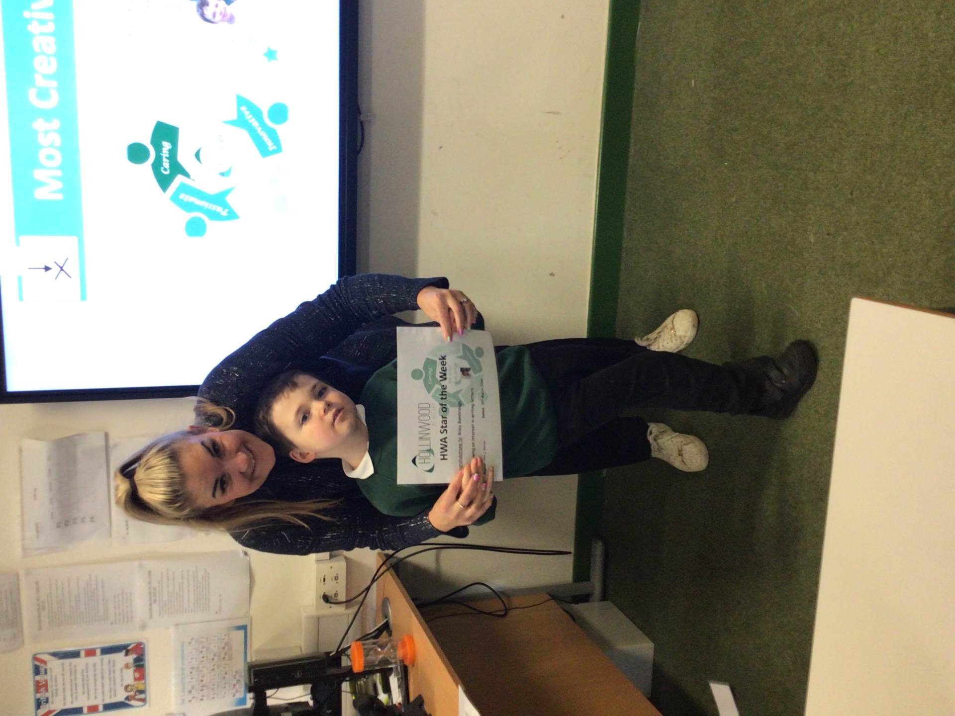 Miss Hulme’s HWA Creative STAR is Thomas for always taking lots of time and effort to create some lovely art work. Well done Thomas!