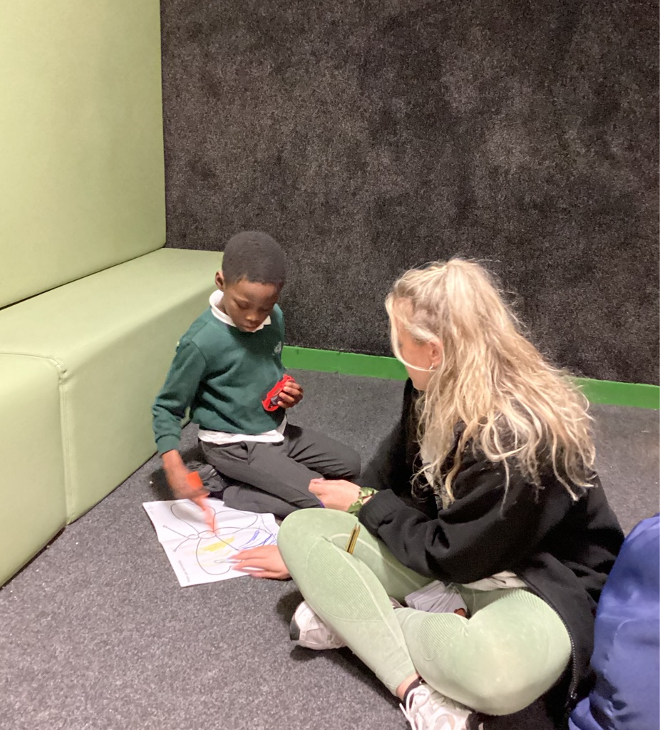 For outdoor education on Thursday, Mrs Gittins' class had a special treat organised for them by Mr Heap to visit Manchester City Sensory Room. Mrs Bennett drove them to Etihad Stadium where they were met by PK who guided them to the entrance to the Colin Bell stand. The children travelled in the VIP lift and walked passed the Directors room and Pep Guardiola's executive room which was open so had the opportunity to have a look inside. They continued their walk to look at the grounds and had their picture taken outside Haaland’s executive room before being taken to the sensory room. They took off their coats and shoes and enjoyed the interactive floor which had a vast menu of interactive activities. A firm favourite was 'sweets' where the children had to walk or roll around to move the sweets to reveal a hidden picture underneath. The children also had lots of fun with the bubble tube, strobe lighting, massager, infinity tube and interactive light wall. There was also a relaxation room where they could chillout on beanbags and look out over the stadium. The children had the most amazing afternoon and would like to thank PK and Mr Heap for organising this special event for them.