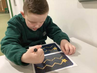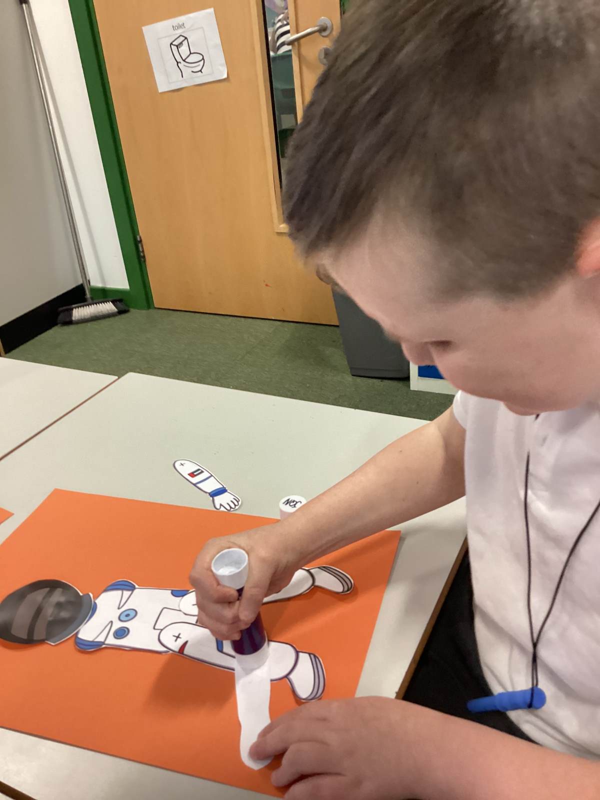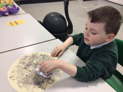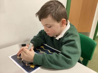 Other activities that the children have enjoyed this half term linked to our topic have included catching a star, building rockets, creating playdough aliens, playing a space explorer game using the iPads, ‘Zooming to the Moon’ during our music lessons, creating flying saucers and making telescopes in DT and foil printing in art to create a ‘moon.’ The children have worked extremely hard over the past 6 weeks and we are all really proud of them all, well done to Olly who was also nominated for the headteacher award by Mrs Quinn for completing his learning with more independence this half term.