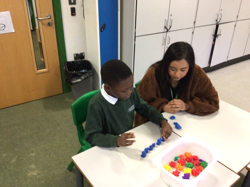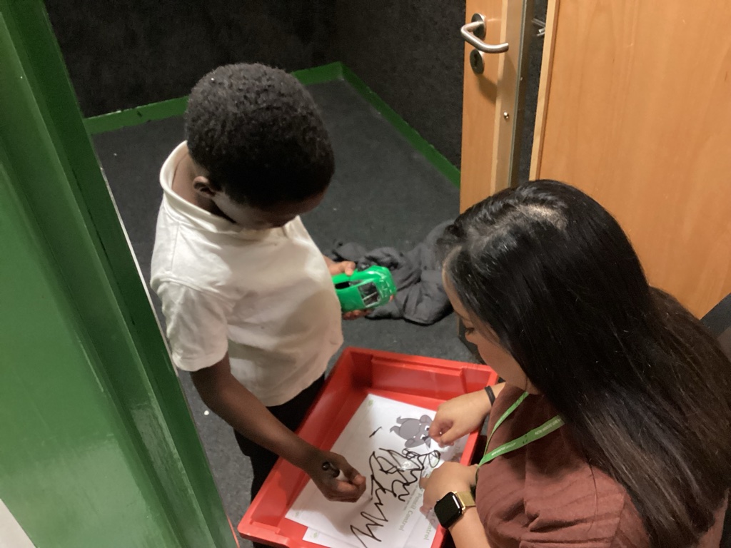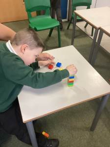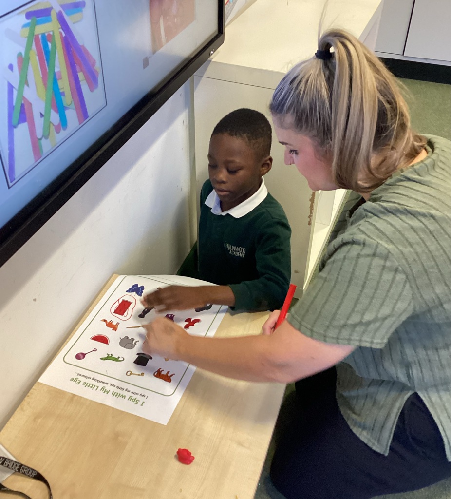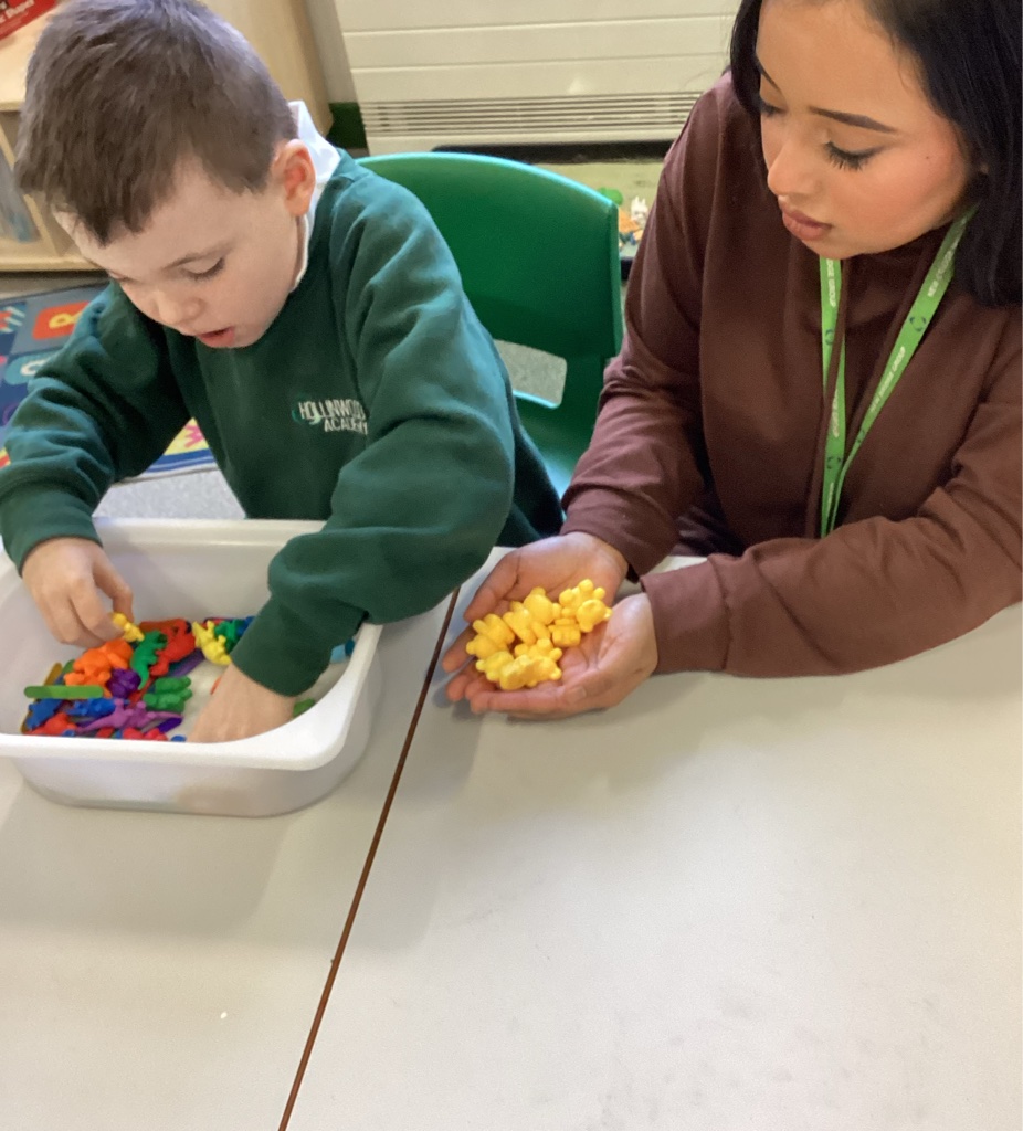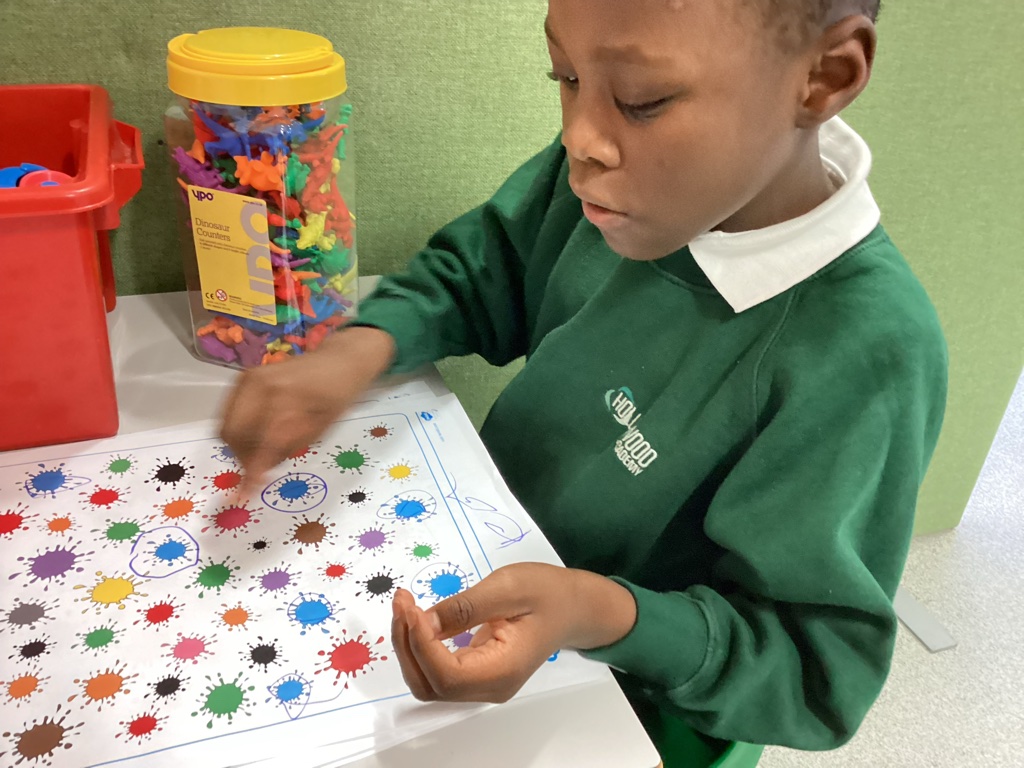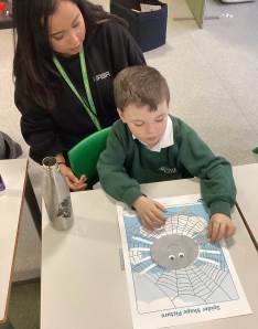 In maths we have been looking at colour, matching and sorting. In phonics this half term we have been looking at the letter sounds ‘s’, ‘a’, ‘t’, ‘p’, ‘i’ and ‘n.’ The children have been learning songs and the mnemonic for each letter sound and they have been identifying objects that start with the sound. The children have had a go at forming the letters for each sound week by week and taken part in fun activities linked to each sound and last week the children created an ‘incy wincy spider’ linked to the letter sound ‘i.’