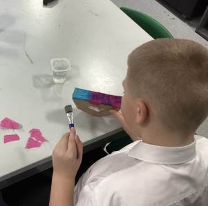 In art, the form have been doing some decoupage. The students decorated a letter using strips of coloured paper and loved getting hands on! "