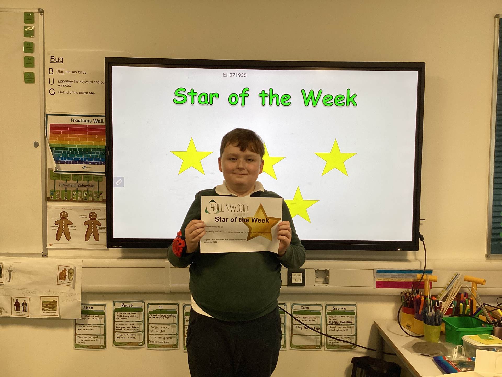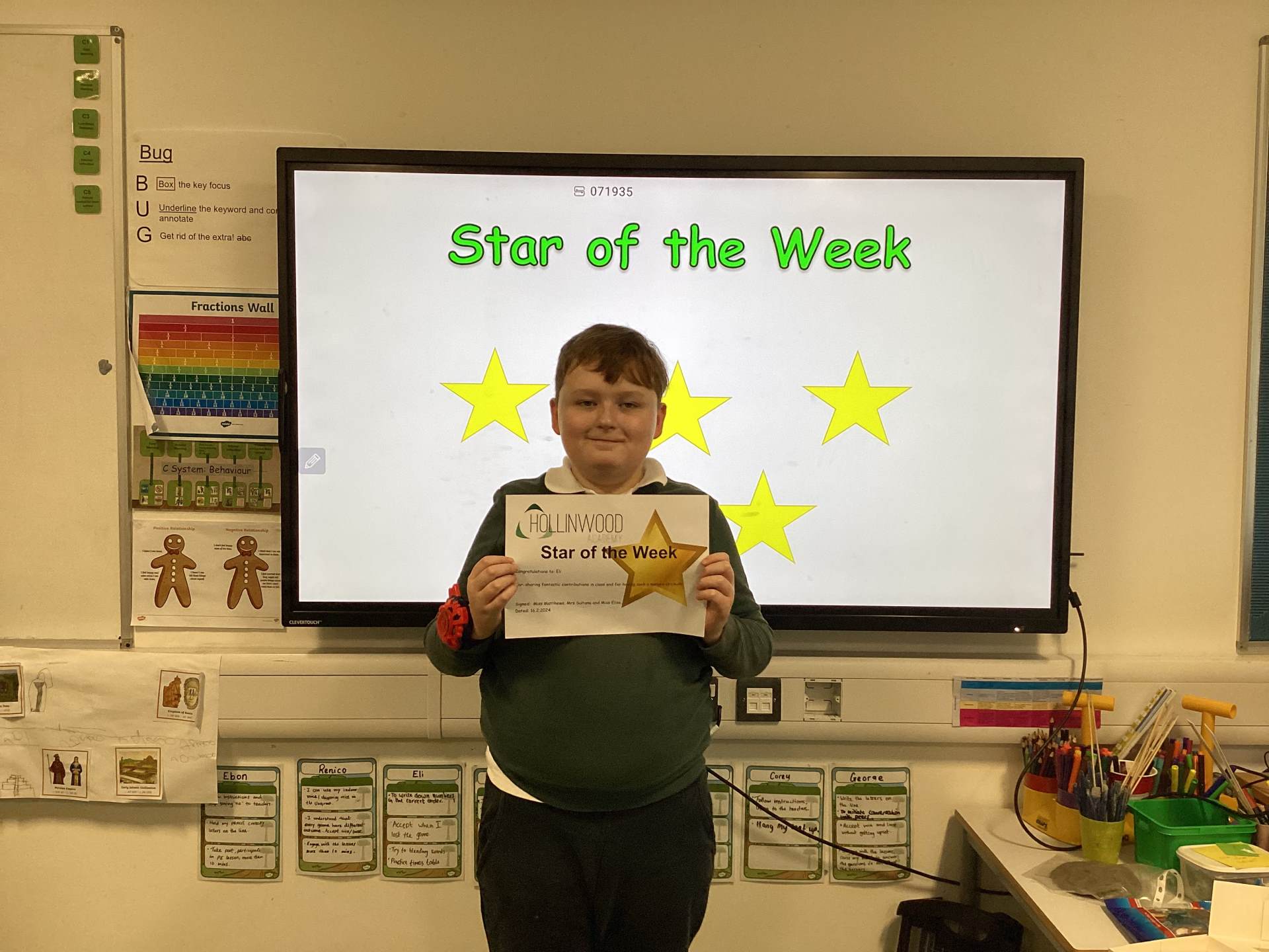 Miss Boothroyd and Miss McDonald’s STAR of the week is Xander for using great punctuation in his English work.