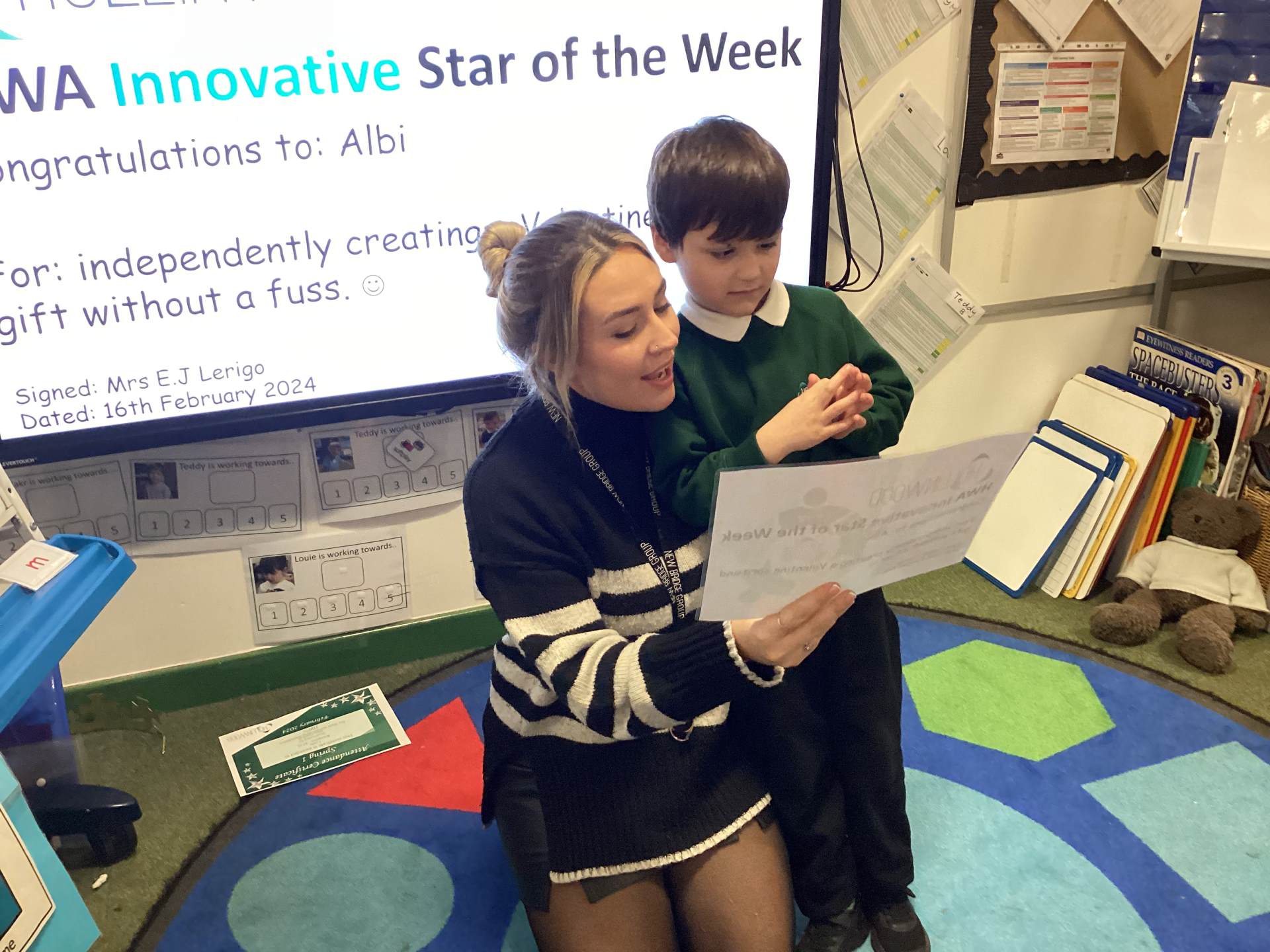 Mrs Lerigo’s HWA Innovating STAR is Albi for independently creating a Valentine's card and gift without a fuss.