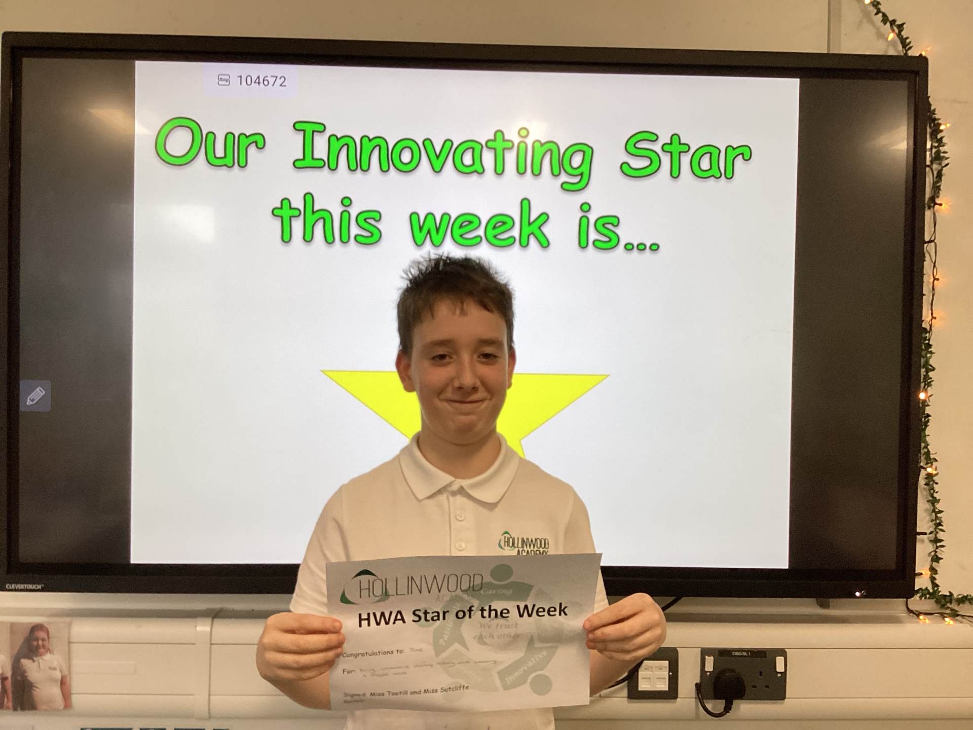 Miss Tootill’s HWA Innovating STAR is Jake for being innovating during history.