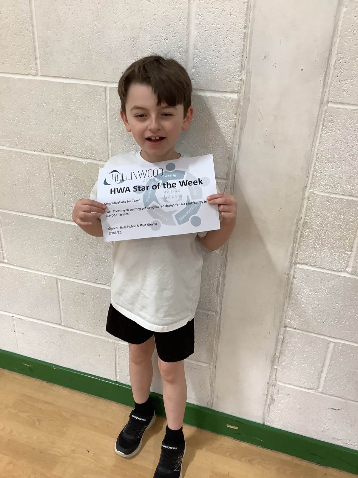 Miss Hulme’s HWA We are Innovative STAR is Jaxon for creating an amazing yet complicated design for his stuffed toy in our D&T lessons.
