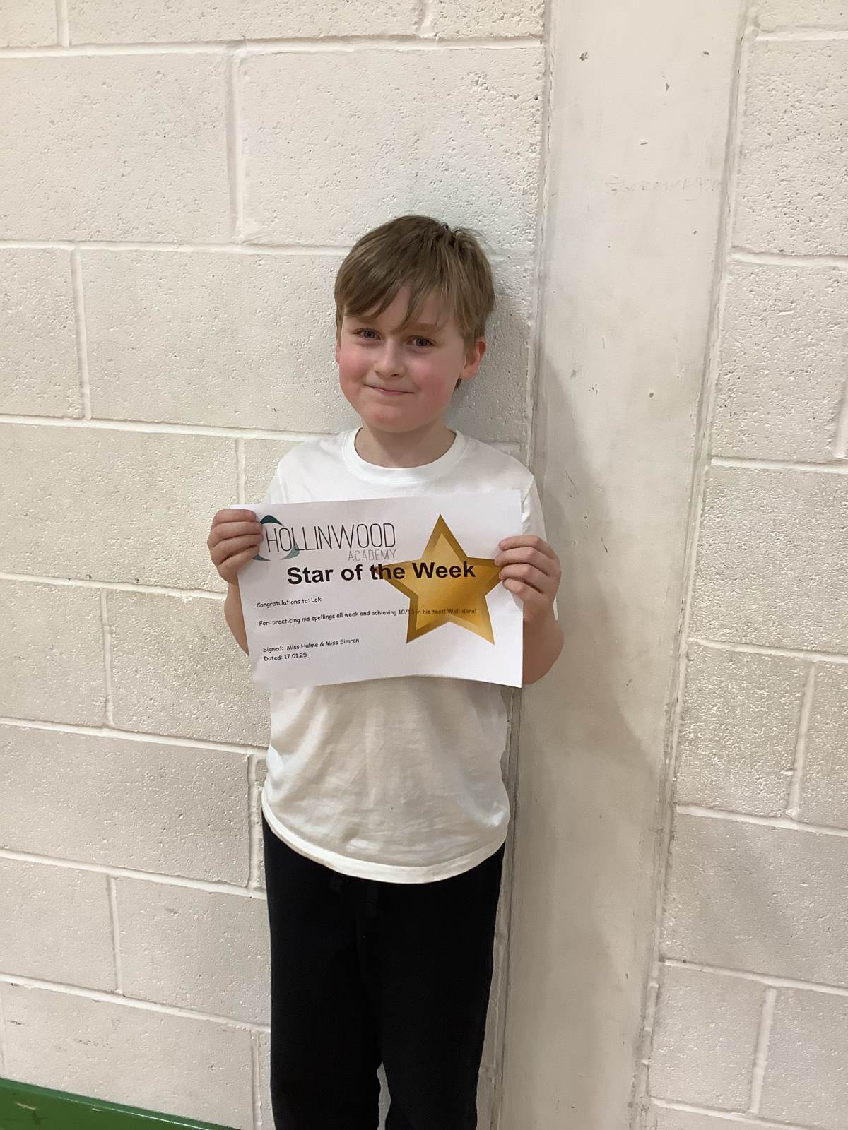 Miss Hulme’s STAR of the week is Loki for practicing his spellings all week and achieving 10/10 in his test!