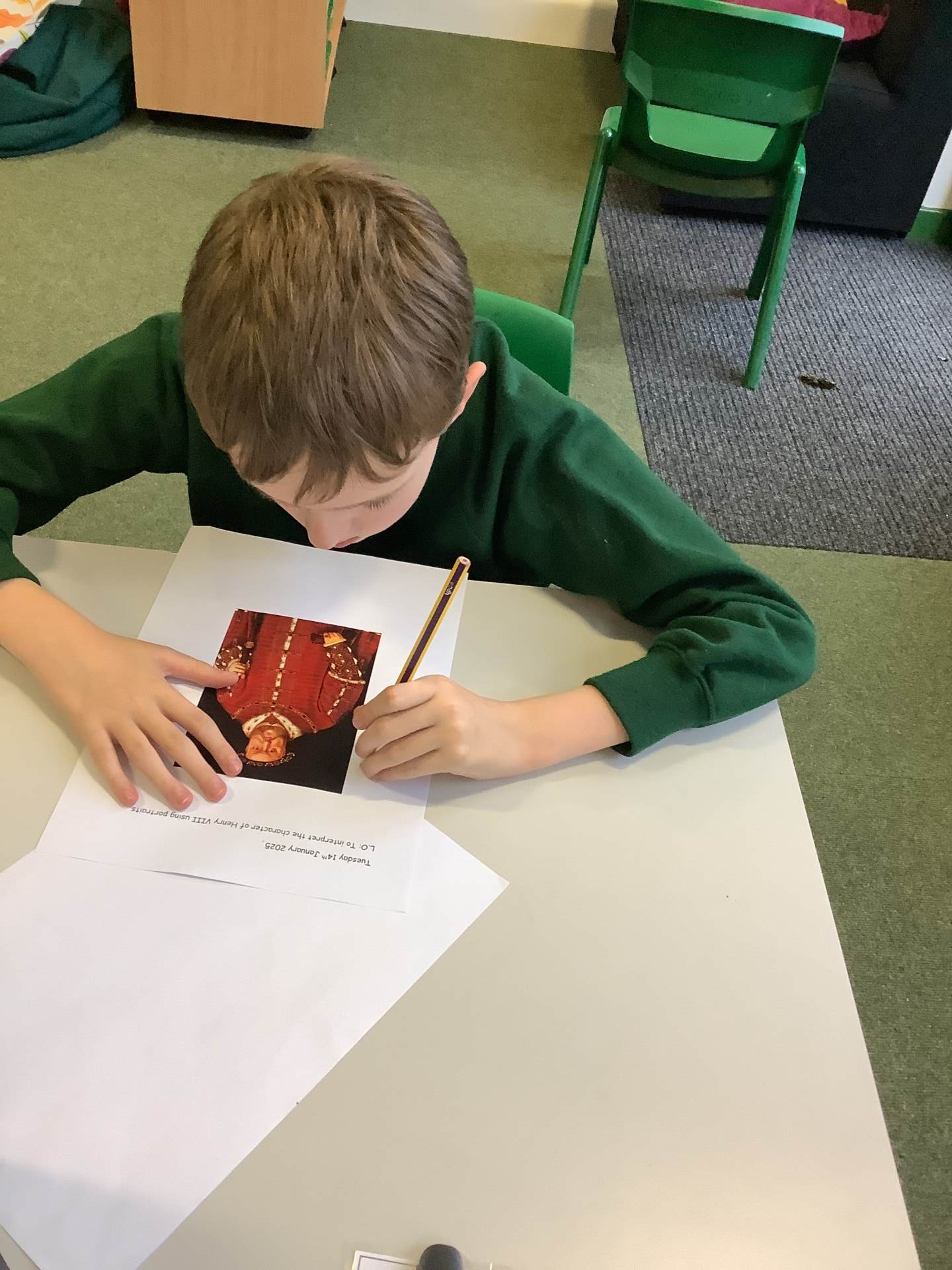 In History, we are continuing our learning of Henry VIII. The children were horrified to learn he had six wives throughout his life but were interested to discover he became King at just 18 after his brother passed away. This led to some discussions about leadership, what it means to rule, and the responsibilities Henry would have had at such a young age. We have also examined various sources related to Henry’s reign, particularly his portraits, to interpret his character. As part of this activity, the children were tasked with determining whether they believe Henry was a fair ruler or a tyrant, using the evidence gathered. This sparked some interesting debates in class, and I was impressed to hear all the different perspectives the children have of him.