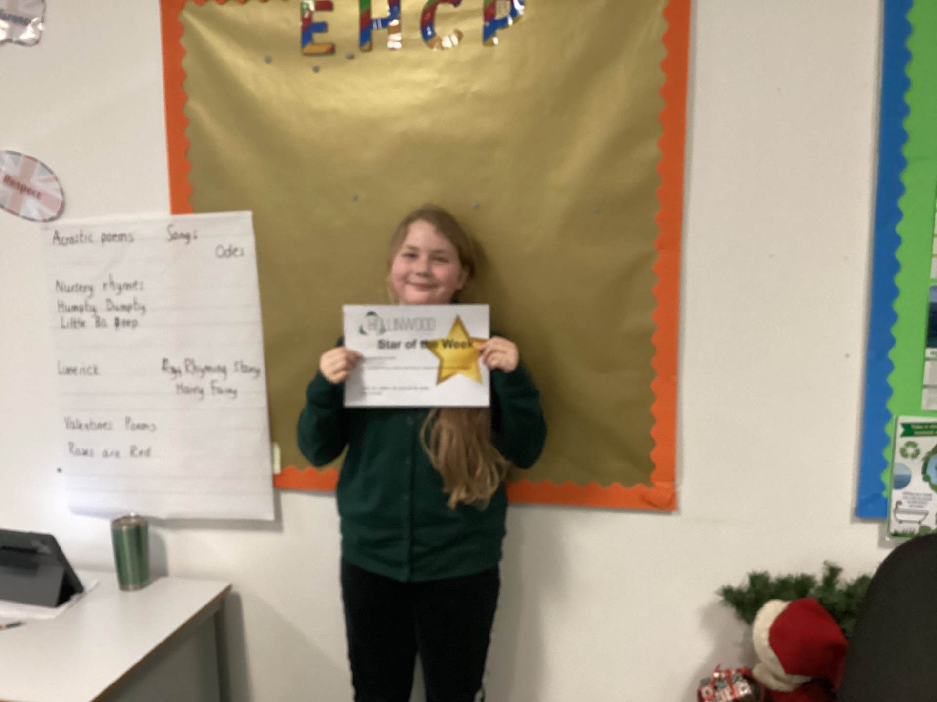 Miss Matthew’s STAR of the week is Alice for settling in to our class so well and for trying her best in Maths and English.