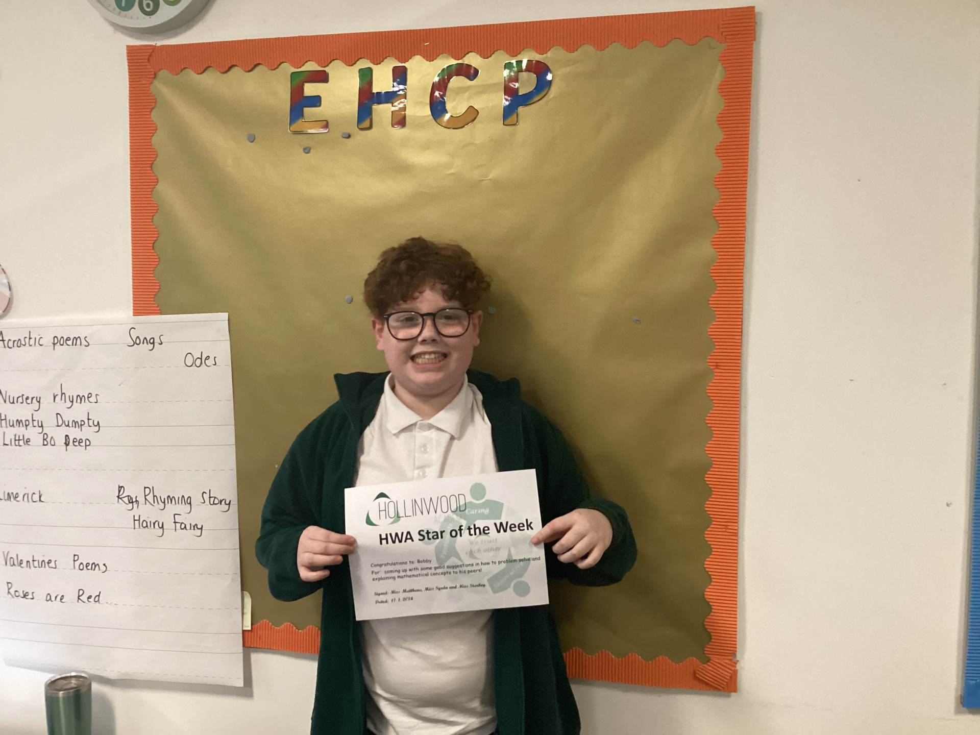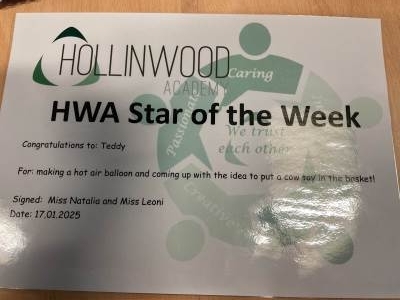 Mrs Sutcliffe’s STAR of the week is Teddy for always being a kind friend to everyone.