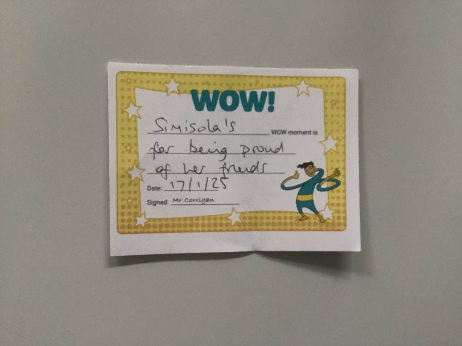 Mr Corrigan’s WOW moments go to Simisola and Matthew. Well done!