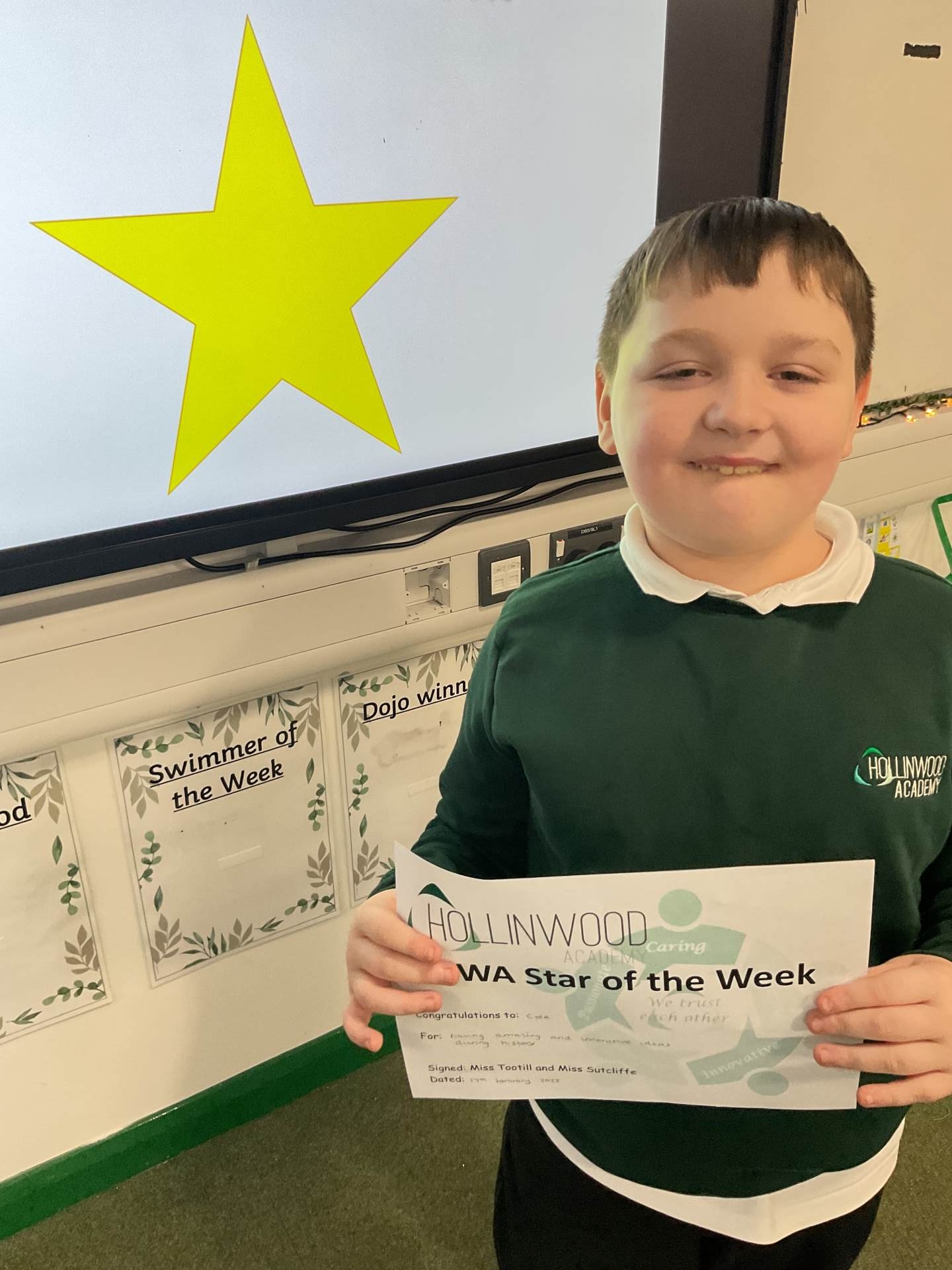 Miss Tootill’s HWA We are Innovative STAR is Cole for his fantastic engagement in History, for answering questions and showing great knowledge on Henry 8th.