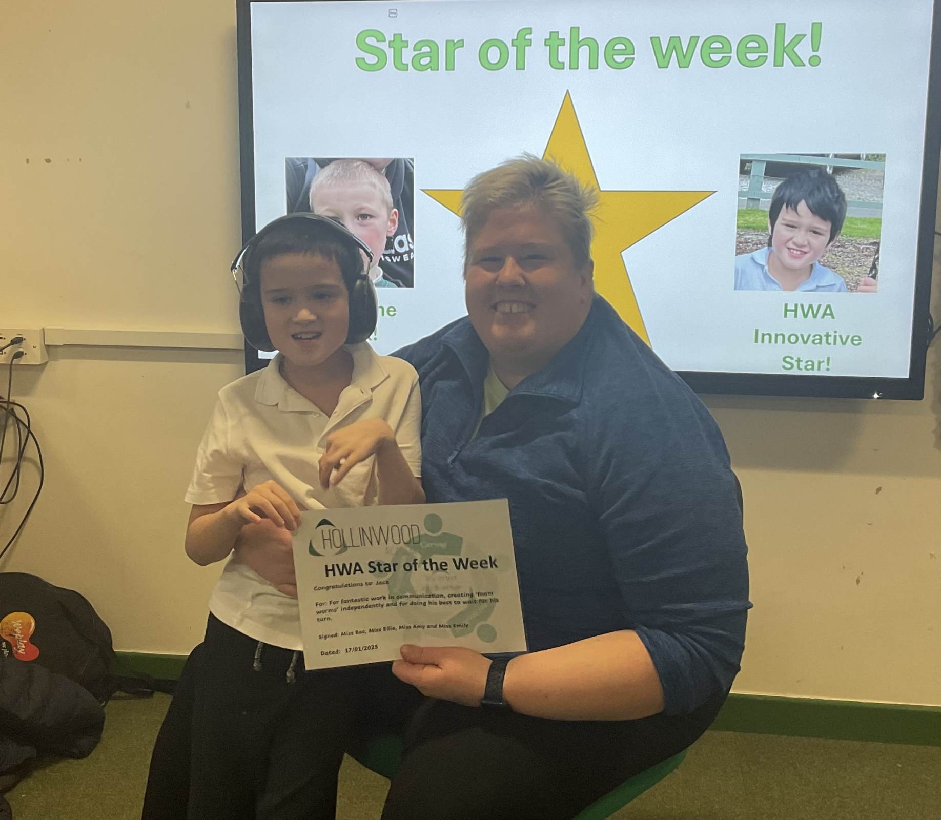 Miss Bailey’s HWA We are Innovative STAR is Jack for fantastic work in communication, creating ‘foam worms’ independently and for doing his best to wait for his turn.