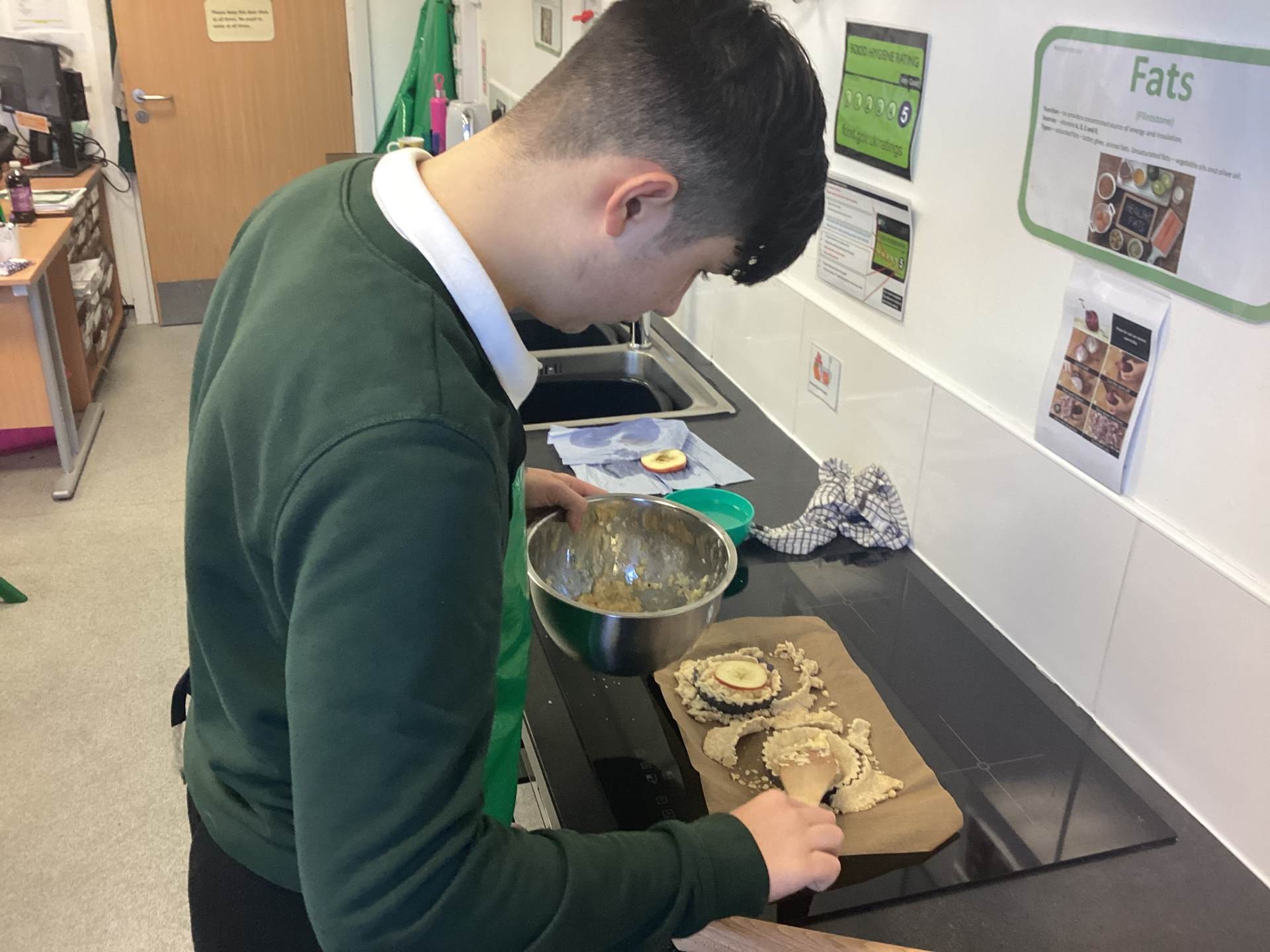 As well as the practical element of food which all the students enjoy there is an element of theory work that has to be completed, recently the students have been investigating enzymic browning with apples. To prevent this happening the sliced apple has to be placed in cold water. Some of the creation that have come out of the food lessons include Christmas cake, chicken marinade, cheese & onion pie with apple and chicken curry.