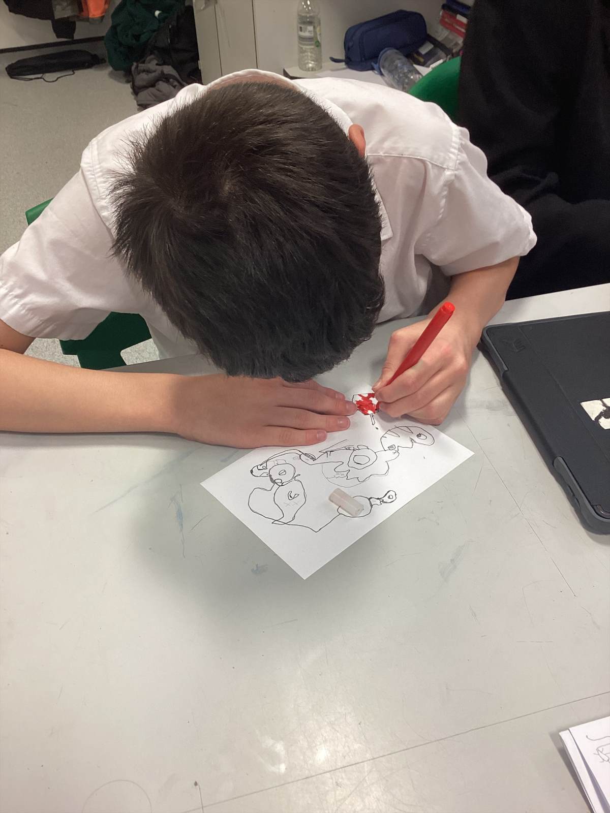Art allowed the students to explore the human anatomy, closely linked to science as they were tasked with drawing features such as the eyes nose and mouth. Students produced amazing sketches! During Music, students created their own games sound effects for games such as Super Mario.