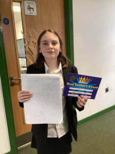In English some students have been using Talk for Write to make storyboards, we are very proud that Sofia received a Headteachers award for her excellent work.