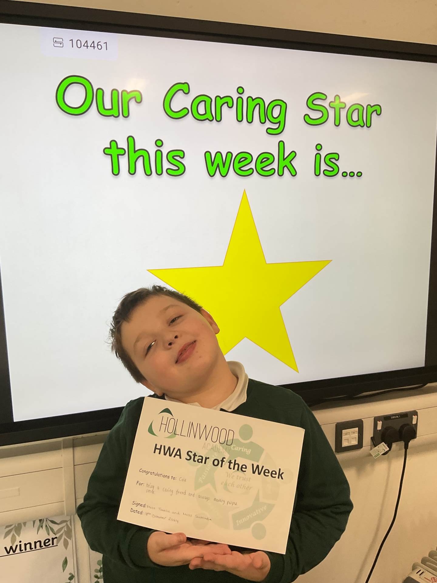 Miss Gittins’ HWA We are Caring STAR is Lewis for trying hard in Maths.