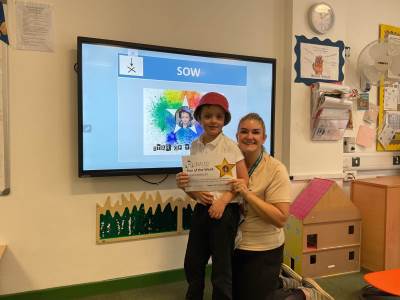 Mrs Davies’ STAR of the week is Arissa for trying really hard to verbally form a sentence to request items.