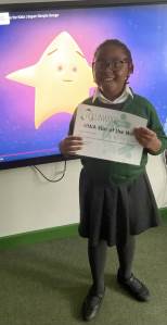 Miss Hulme’s STAR of the week is Isaam for fantastic writing in English and creating a fabulous story.