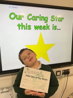 Miss Sutcliffe’s HWA We are Caring STAR is Teddy Bent for always being a caring friend and for being so helpful to all his teachers.