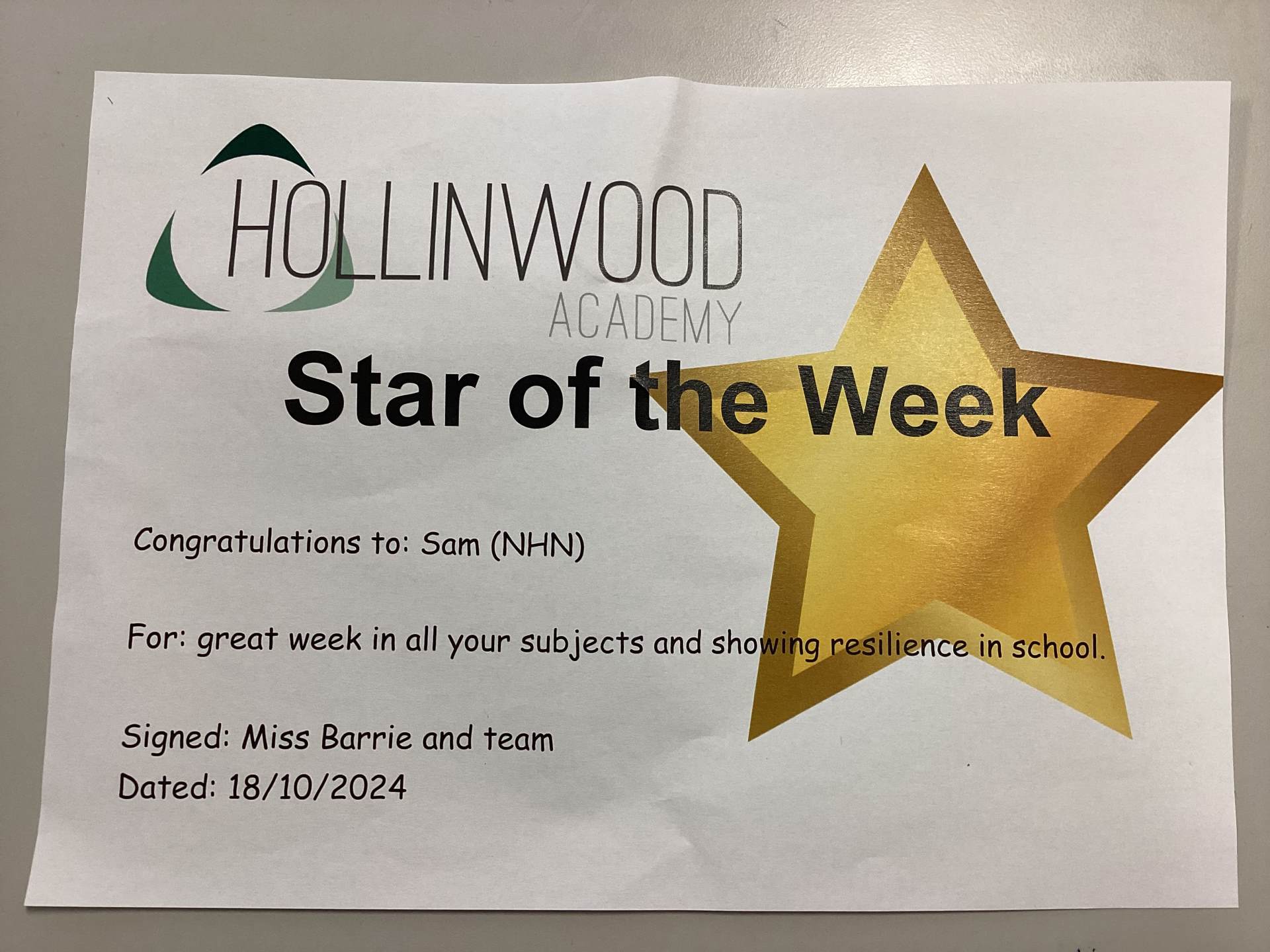 And a huge well done to our secondary Hollinwood Academy STARs this week: