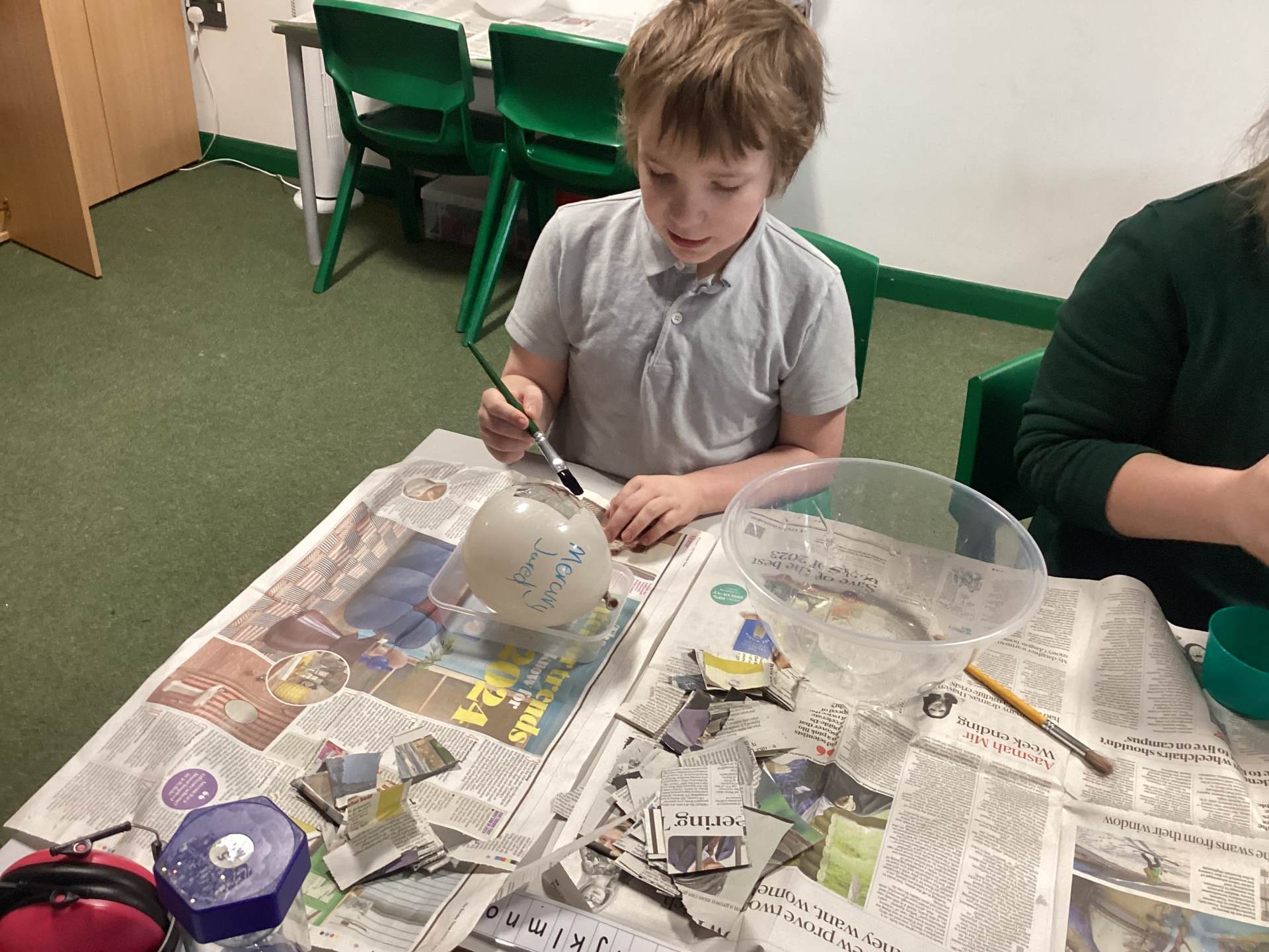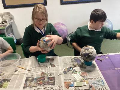 In Science we have been learning about Space, we made some paper mache planets and learned about the differences between the geo-centric model (if Earth was in the centre of the Solar System) and the helio-centric model (the Sun being in the centre). We know why we have 4 seasons and this is dependent on how the Earth orbits, and we know how day and night happen – because Earth takes 24 hours to spin on it’s axis. We’ve been able to remember some very tricky language!