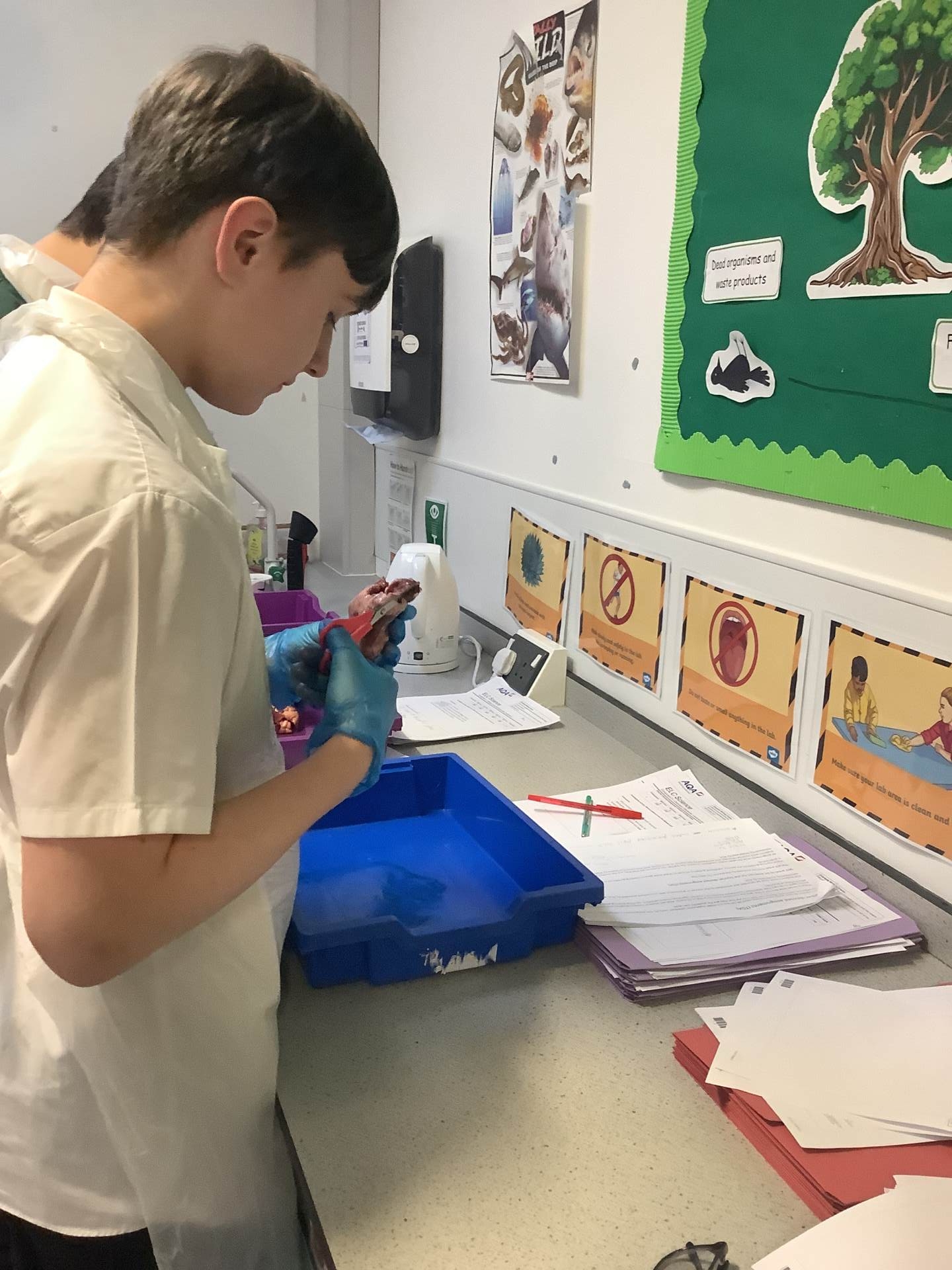 During science with Miss Bouttell, the class have been learning about the different functions of the heart during their Biology lessons. They enjoyed dissecting a lamb’s heart to see the different chambers associated with it and so they could visualise how the blood runs through it.