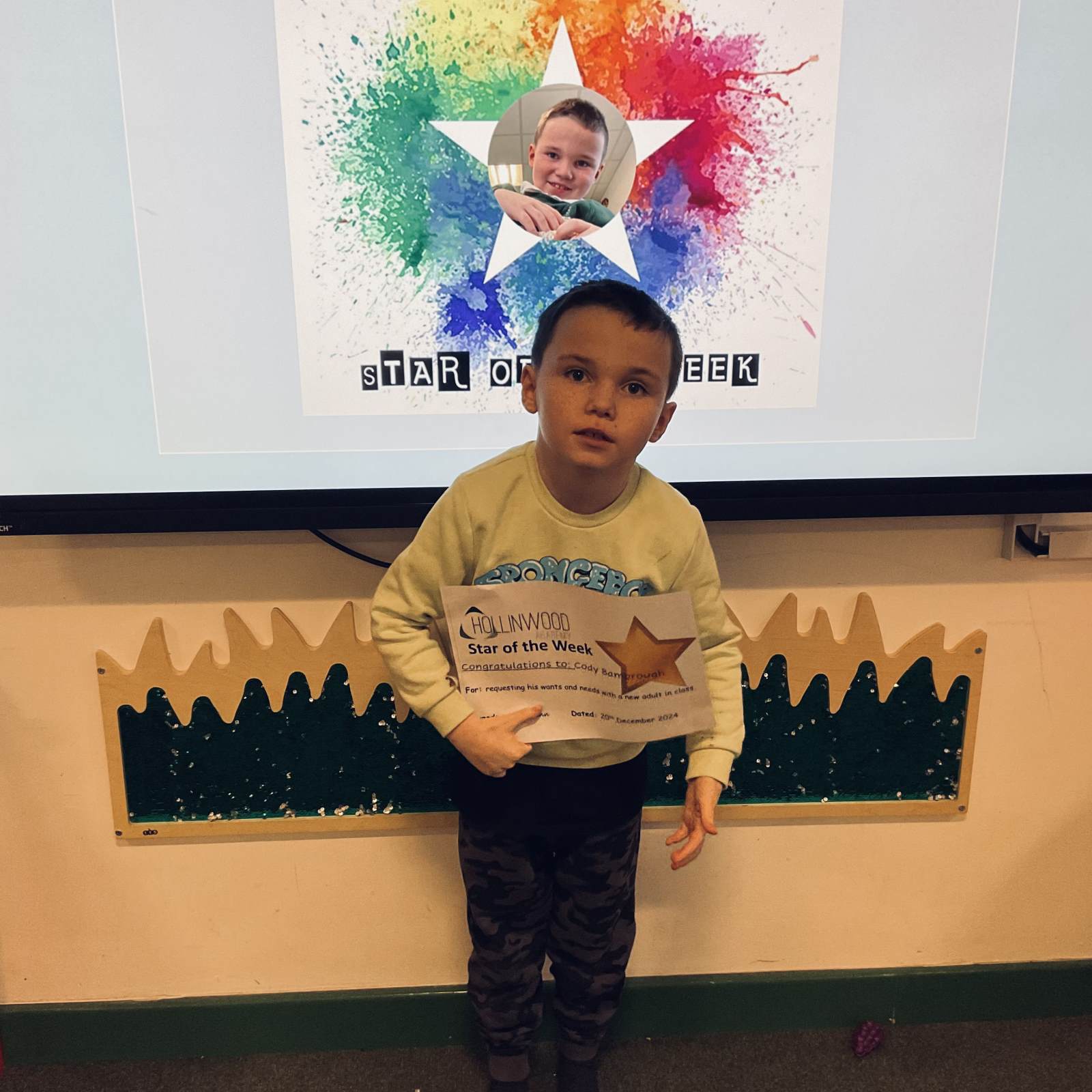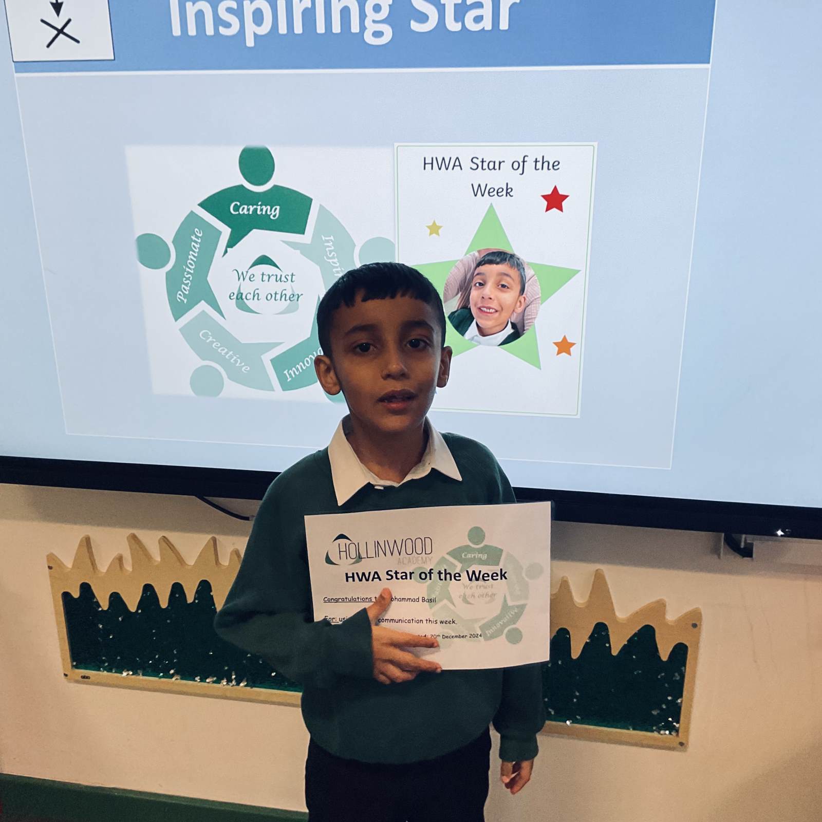 Miss Sutcliffe’s HWA We are Inspiring STAR is Ethan for inspiring us all with his amazing communication this week and his huge infectious smile!