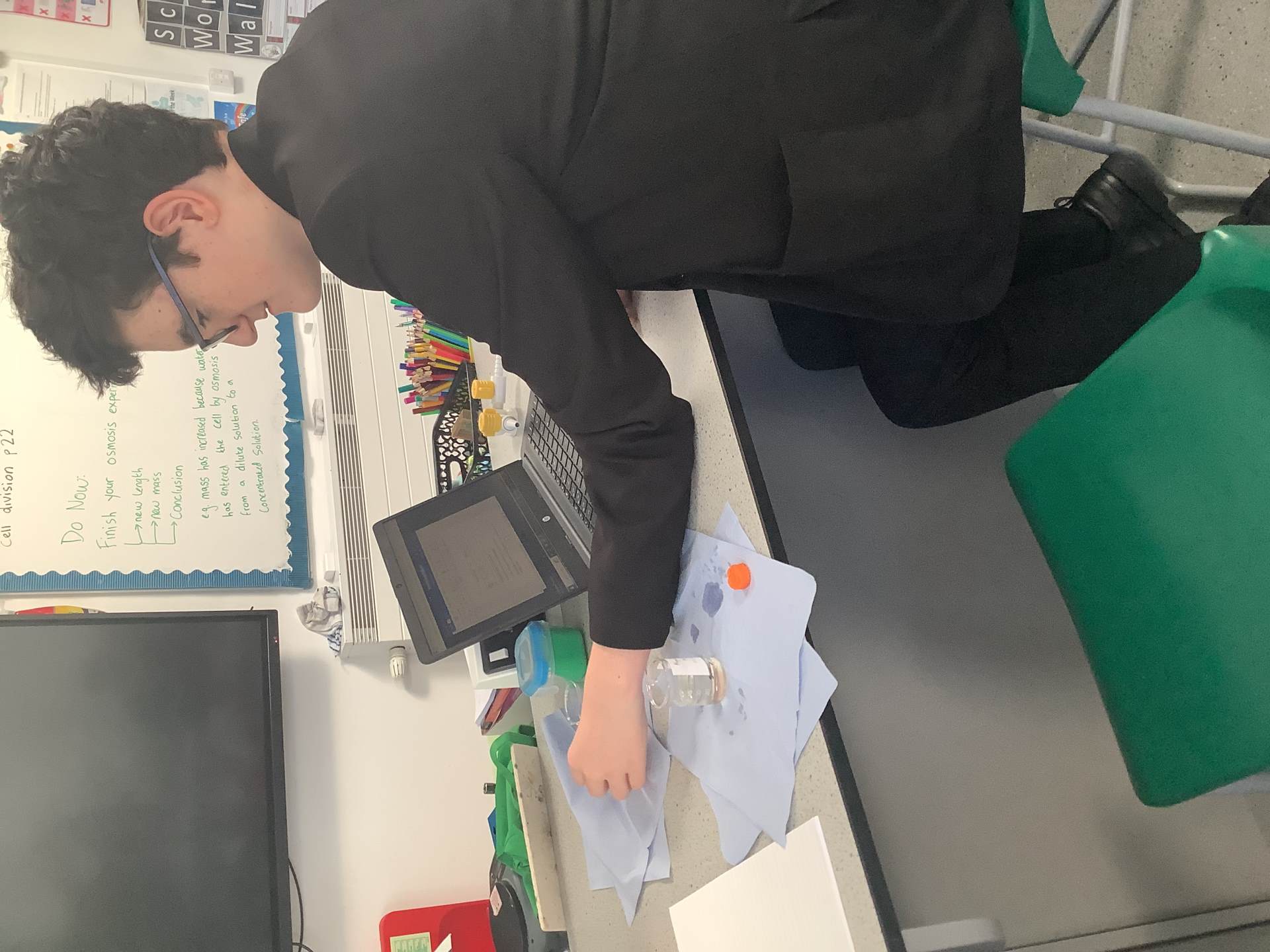 Science has started with experiments, looking at osmosis. They were testing two vegetables in deionized and sugared water to test for osmosis.