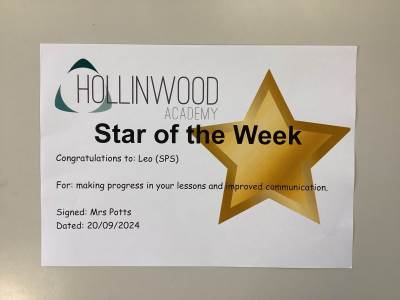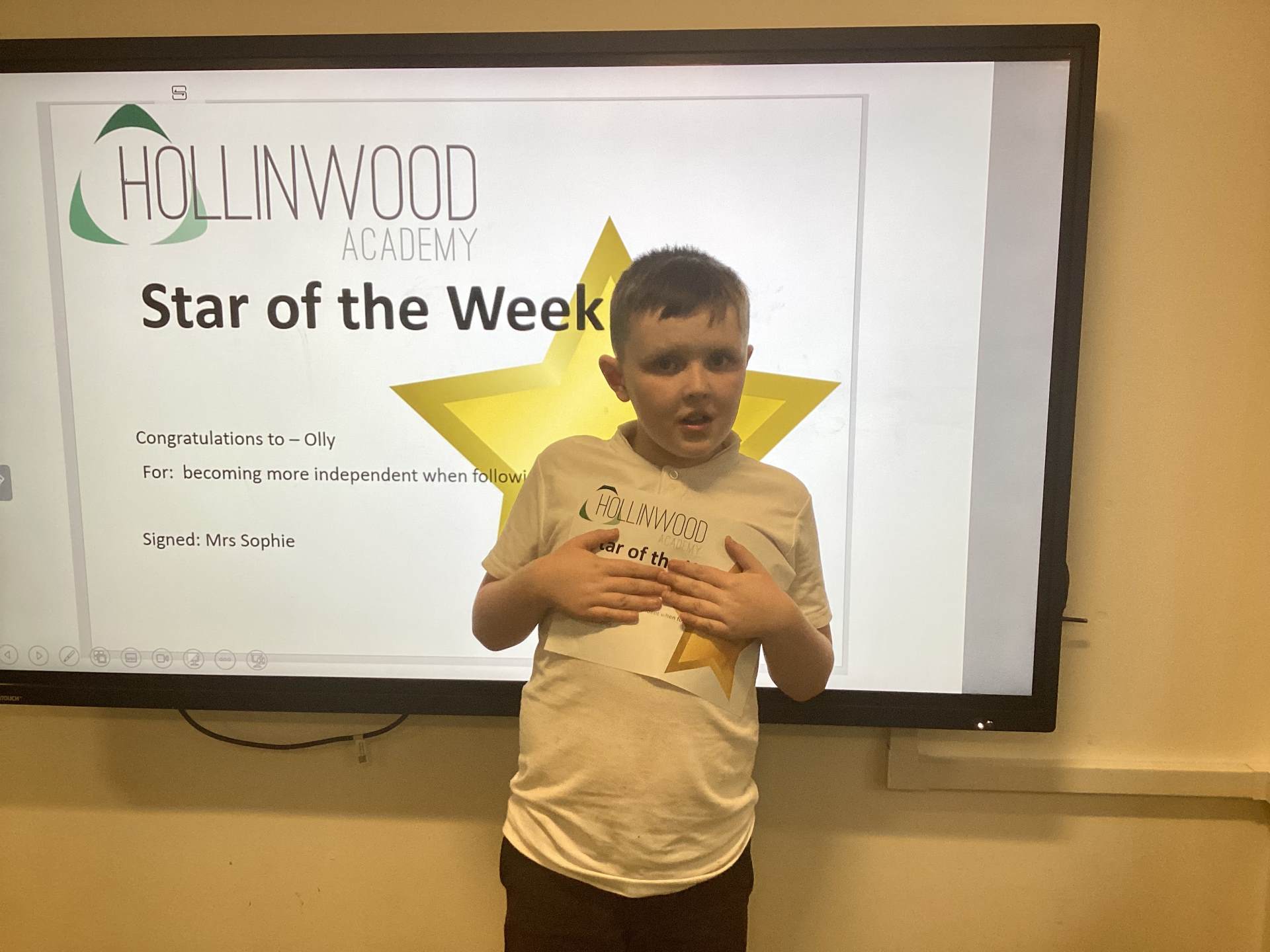 Mrs Davies’ STAR of the week is Olly for becoming more independent when following his sensory circuit.