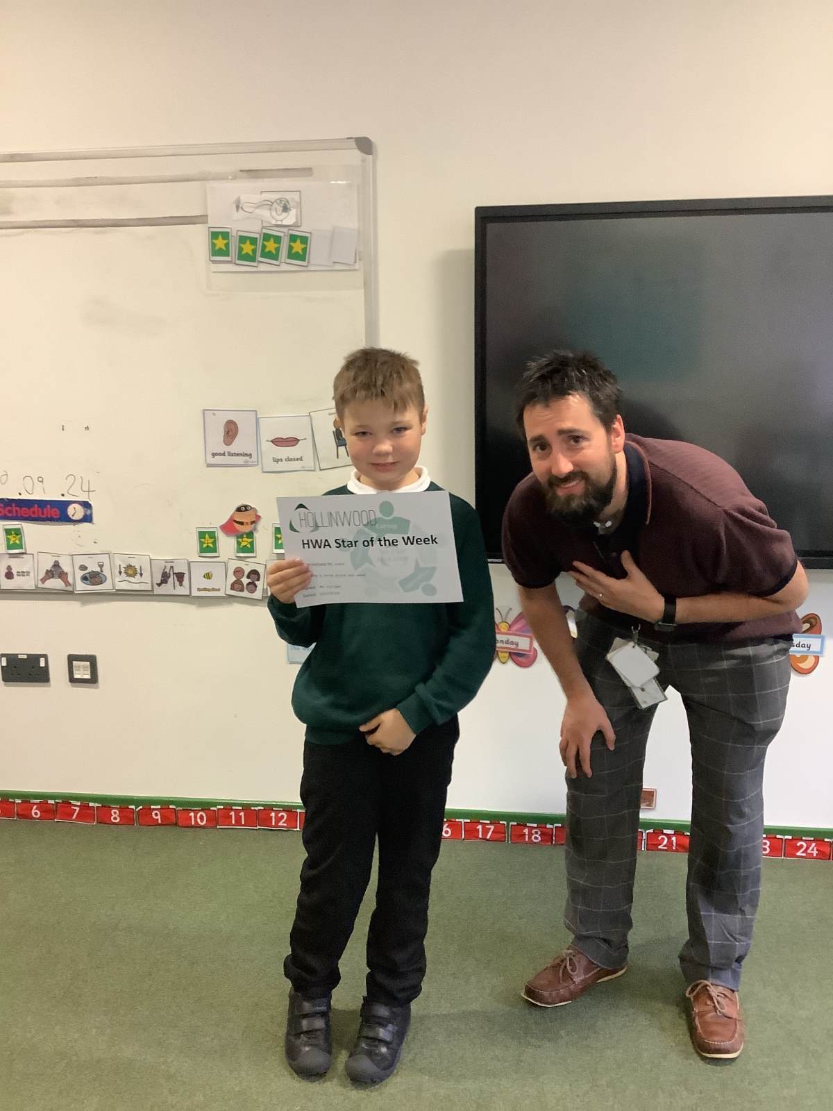 Miss Bailey’s HWA We are Caring STAR is Oliver for building relationships with new adults and engaging well in attention autism sessions all week.