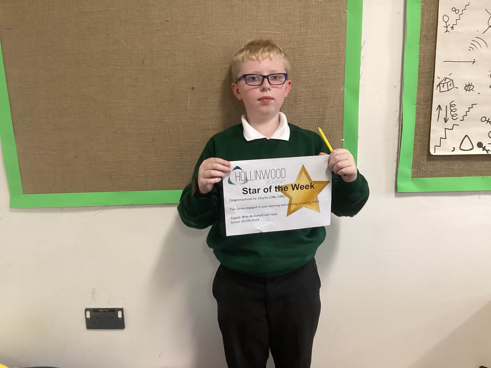 Miss Gittins’ STAR of the week is Hadley for fantastic phonics work.